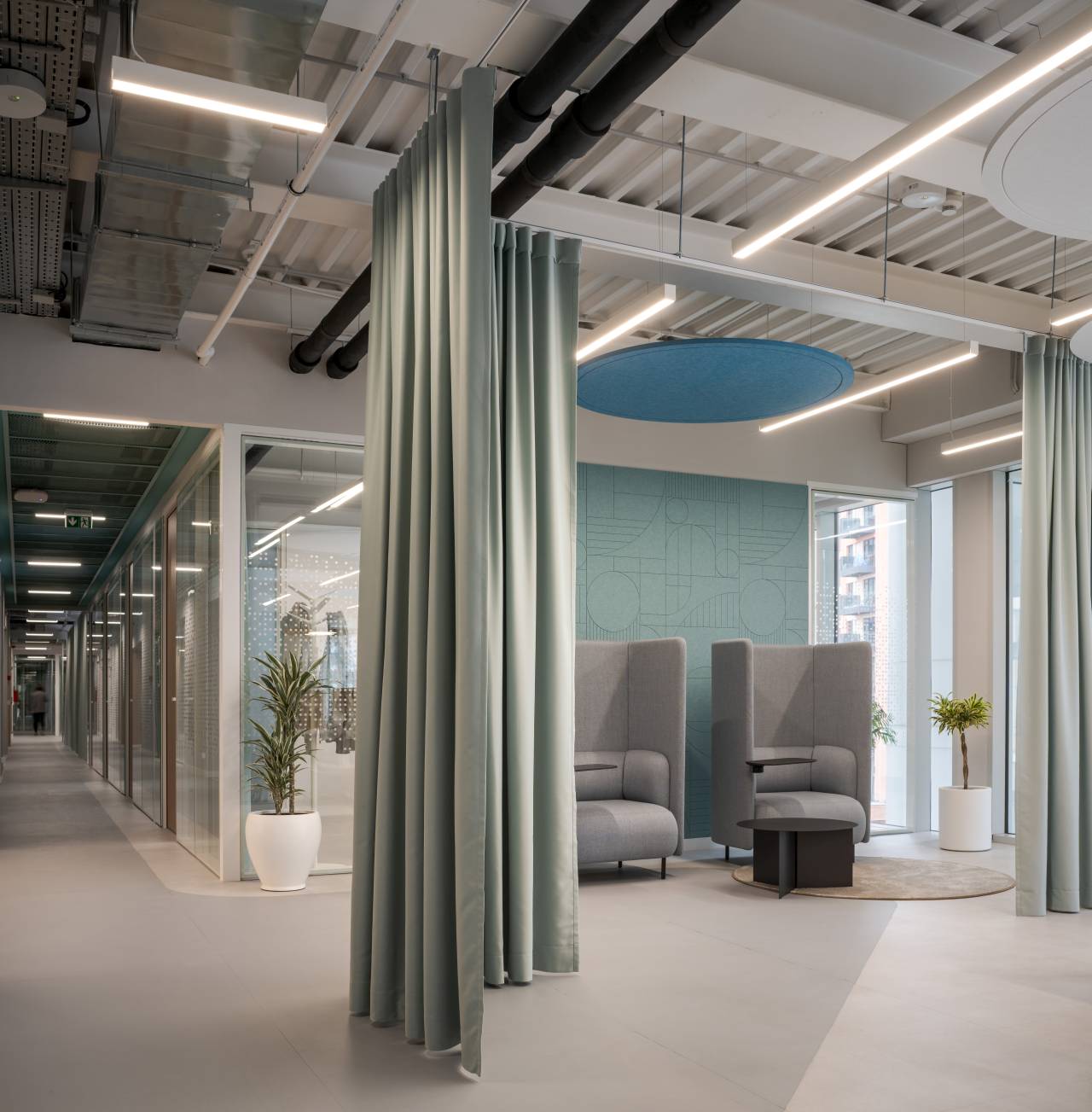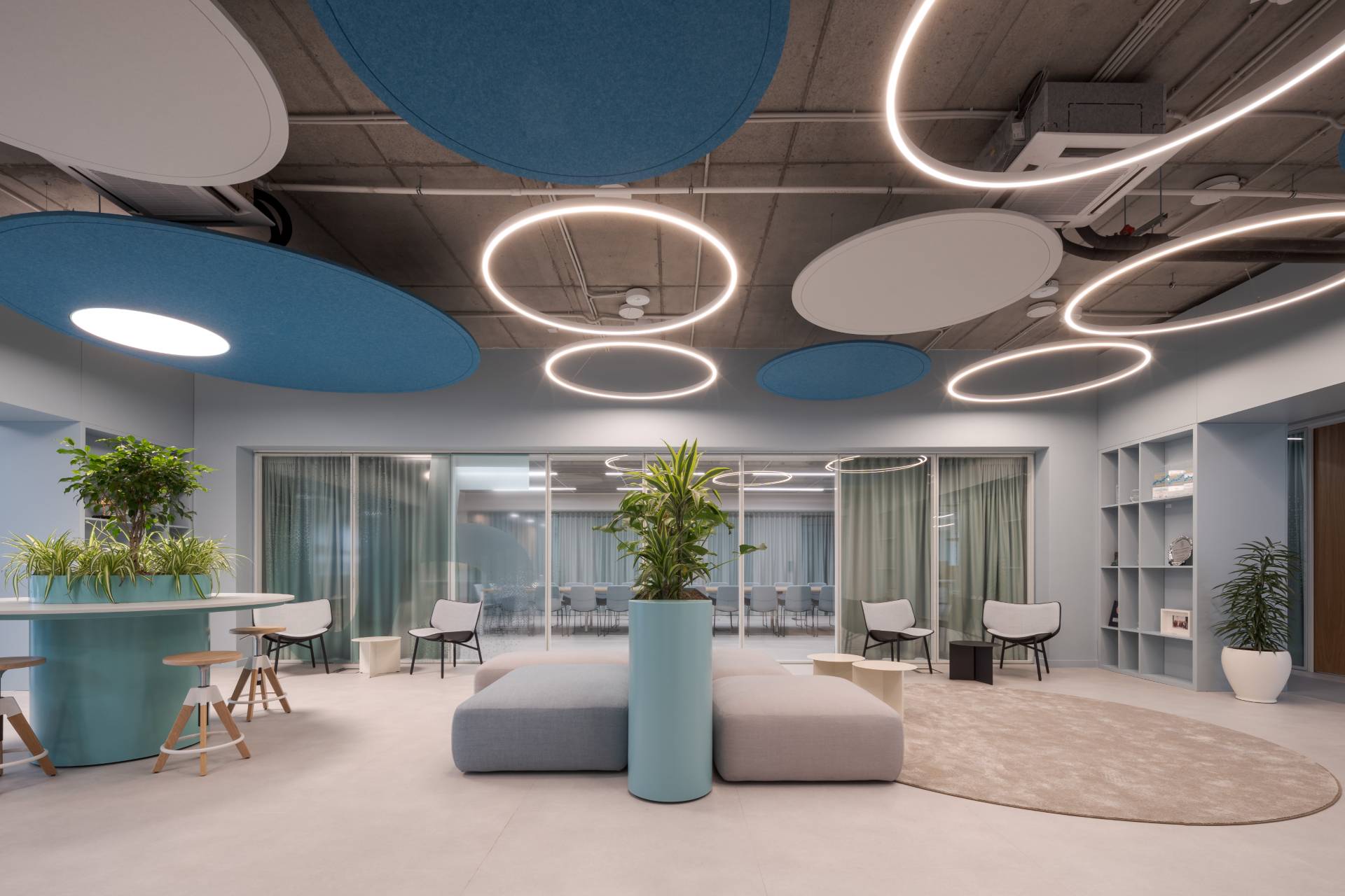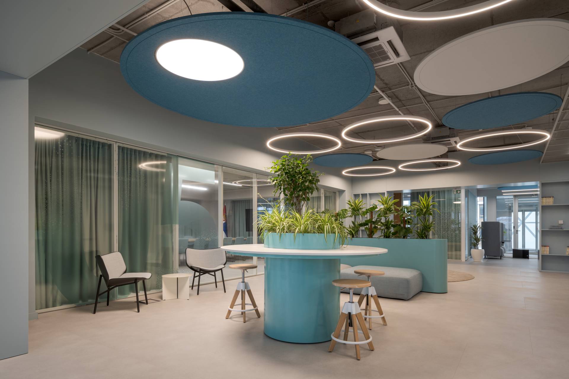 Uvođenjem relaks zona, “phone box” prostora i mesta za neformalnu komunikaciju, prostor dobija novu dinamiku. Funkcije se prepliću, a radni ambijent postaje fleksibilniji i prilagođen savremenim načinima rada.