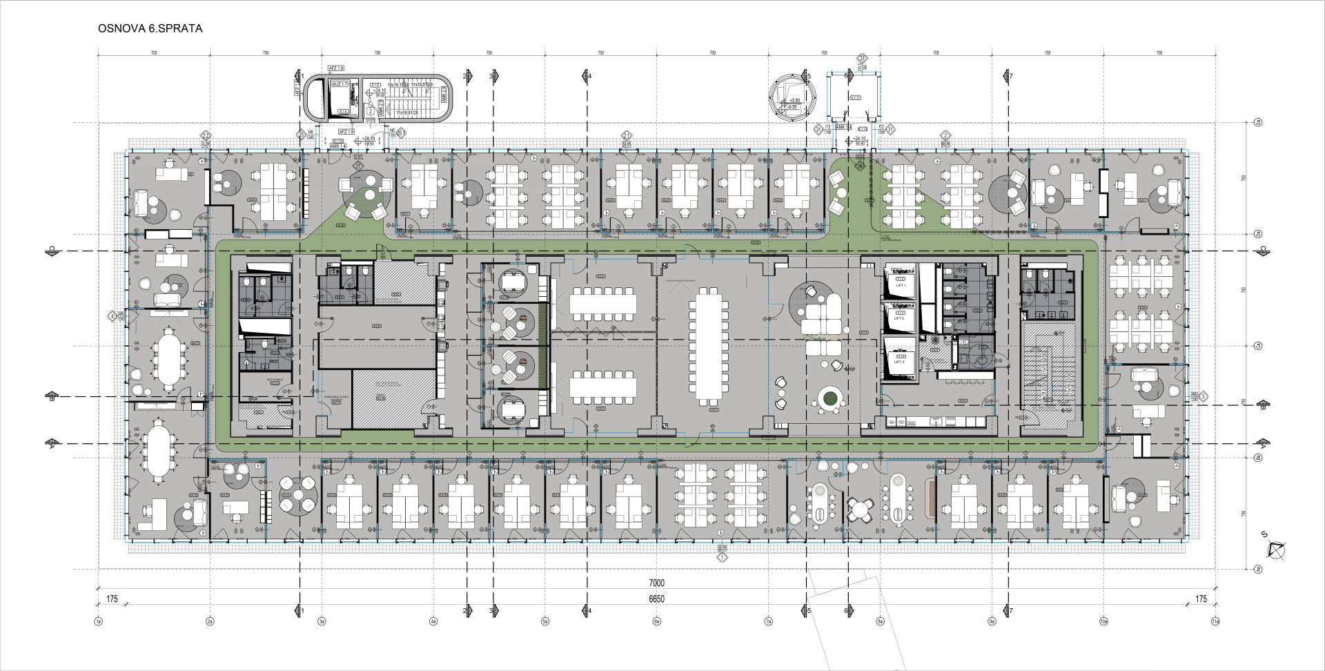 “Osnovni izazov u konceptualnom smislu je formiran prostor bez jasnog korisnika za sve zone”, objašnjava autor, dodajući da je cilj bio da se uvede što više svetla i formira zeleni, biofilični ambijent.