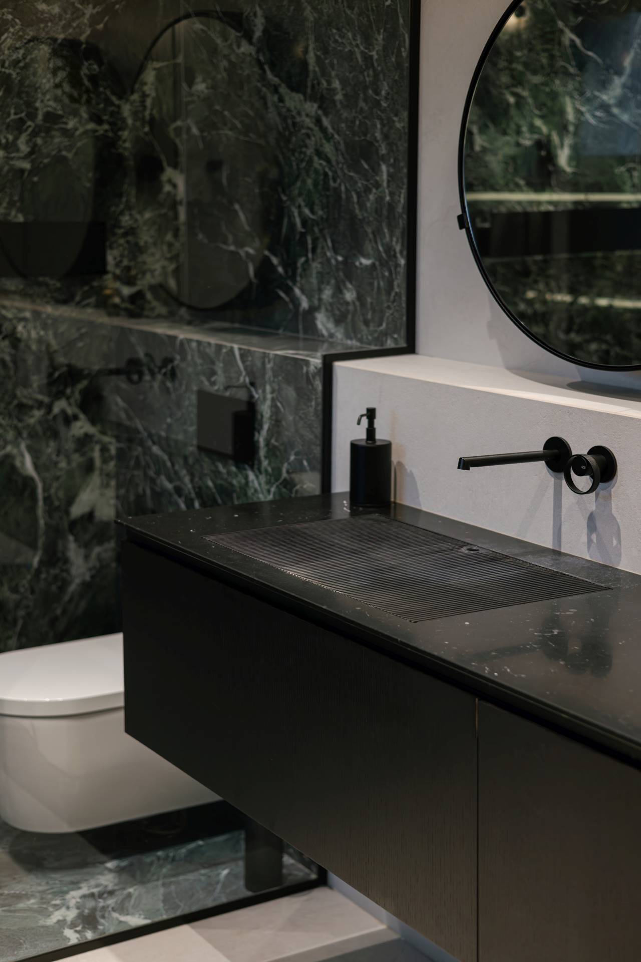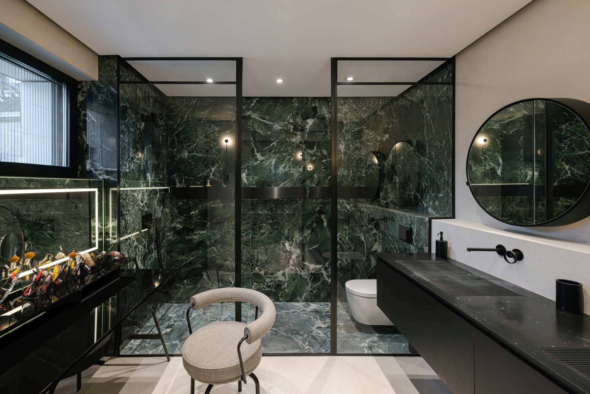Ta ideja nije ostala na nivou estetike, već je pretočena u prostorna rešenja koja uključuju privatni spa centar u podrumu, hotelski koncipiranu master spavaću sobu i fluidno organizovan dnevni prostor.