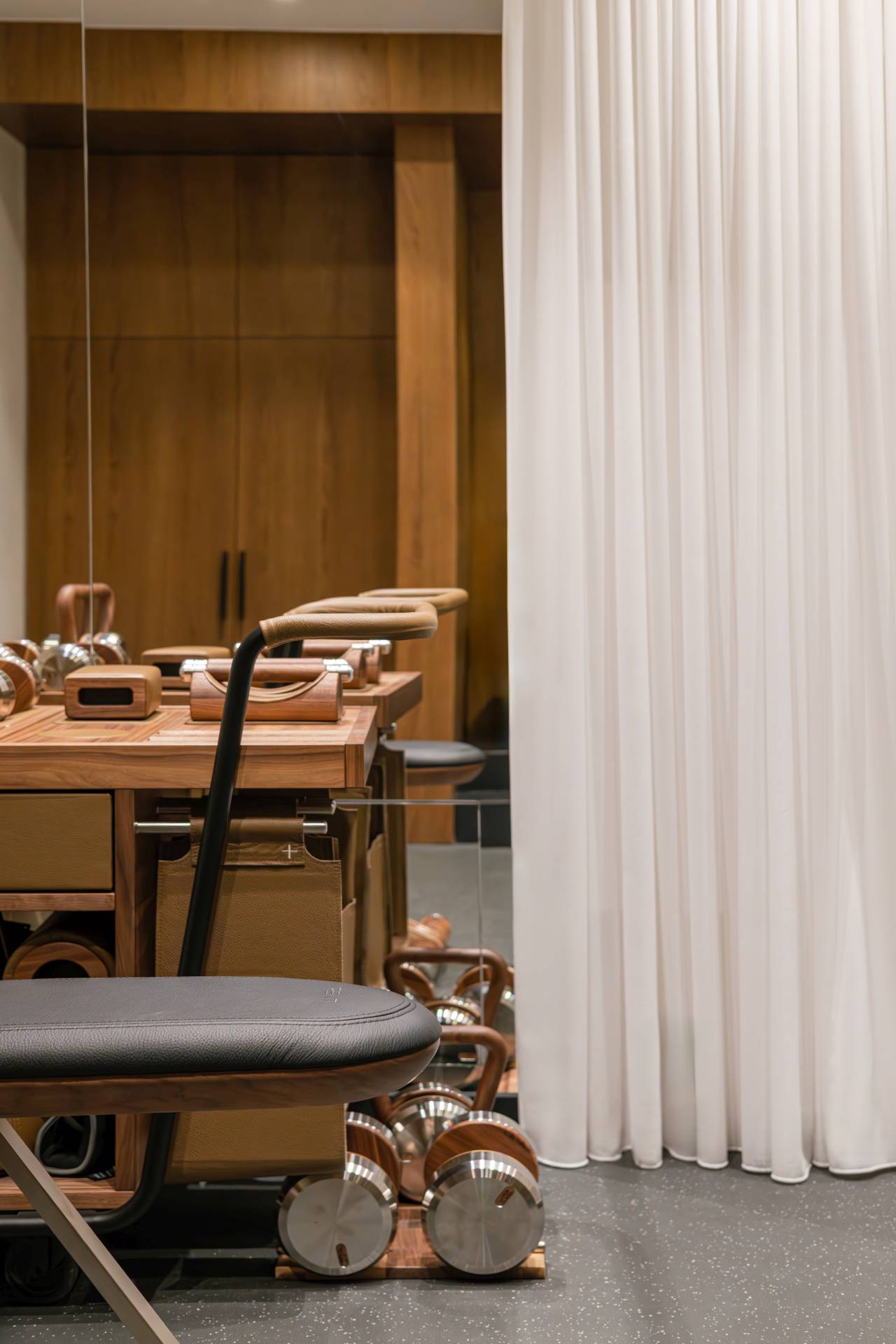 Materijalizacija enterijera oslanja se na prepoznatljive elemente savremenog italijanskog luksuza. Korišćeni su prirodno drvo u tamnim tonovima, keramika sa efektom mermera, staklo i metalni detalji u bronzano-zlatnim nijansama, uz visokokvalitetne tekstilne obloge.