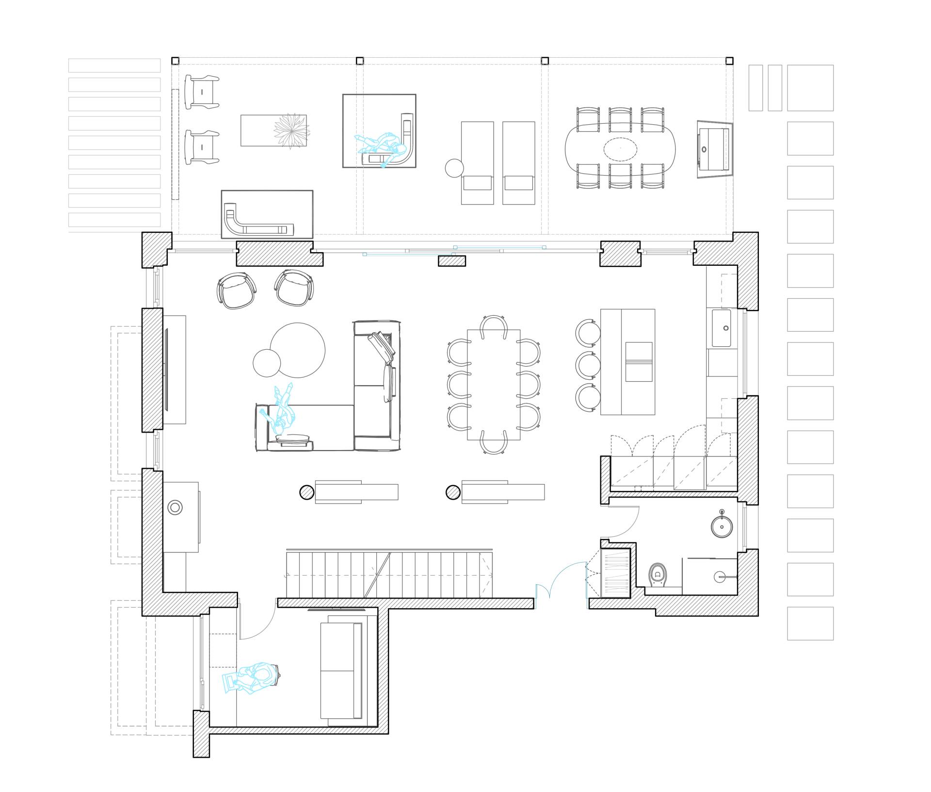 Organizacija prostora zasnovana je na preciznoj podeli privatnih i zajedničkih zona, uz stalnu težnju ka osećaju prostorne protočnosti.
