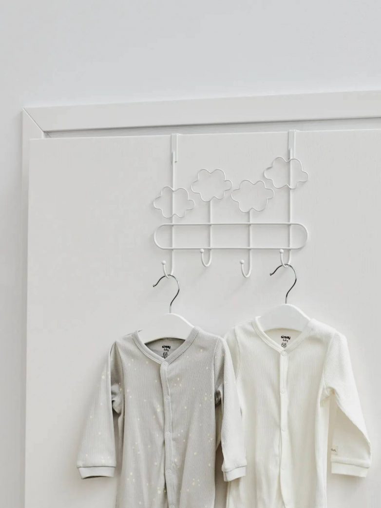 Čiviluk namenjen kao dodatak za vrata, izrađen od metala, sa motivima oblačića može da bude originalan detalj kako za dečiju sobu, tako i za kupatilo.