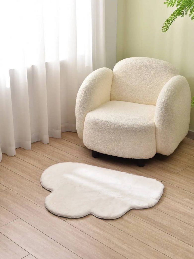 Manji tepih kao da je pravljen da prikaže sve karakteristike boje „Cloud Dance“, pa tako na temu odgovara i svojim oblikom mekanog oblačića.