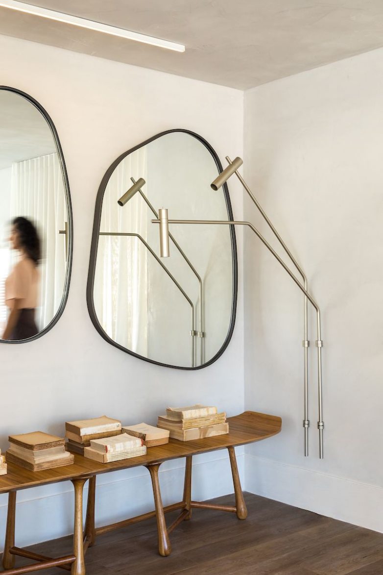 Monhromatske površine zidova i plafona izvedene su na način koji oponaša Tadelakt tehniku, odnosno poznatu marokansku građevinsku tehniku.