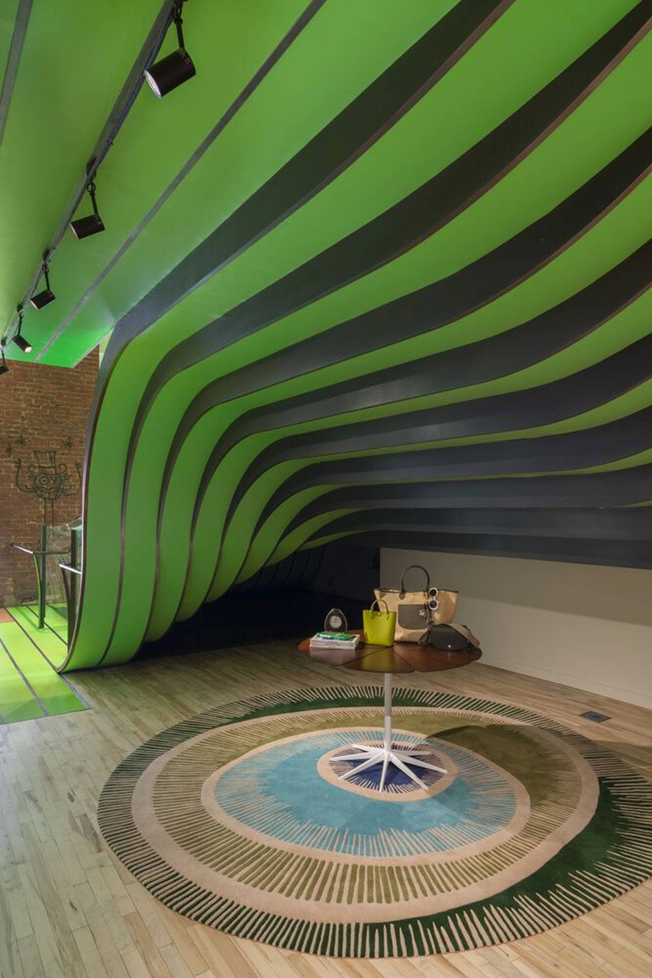 U samom središtu redizajna nalazi se prepoznatljivo talasasto stepenište obloženo Longchamp zelenom bojom.