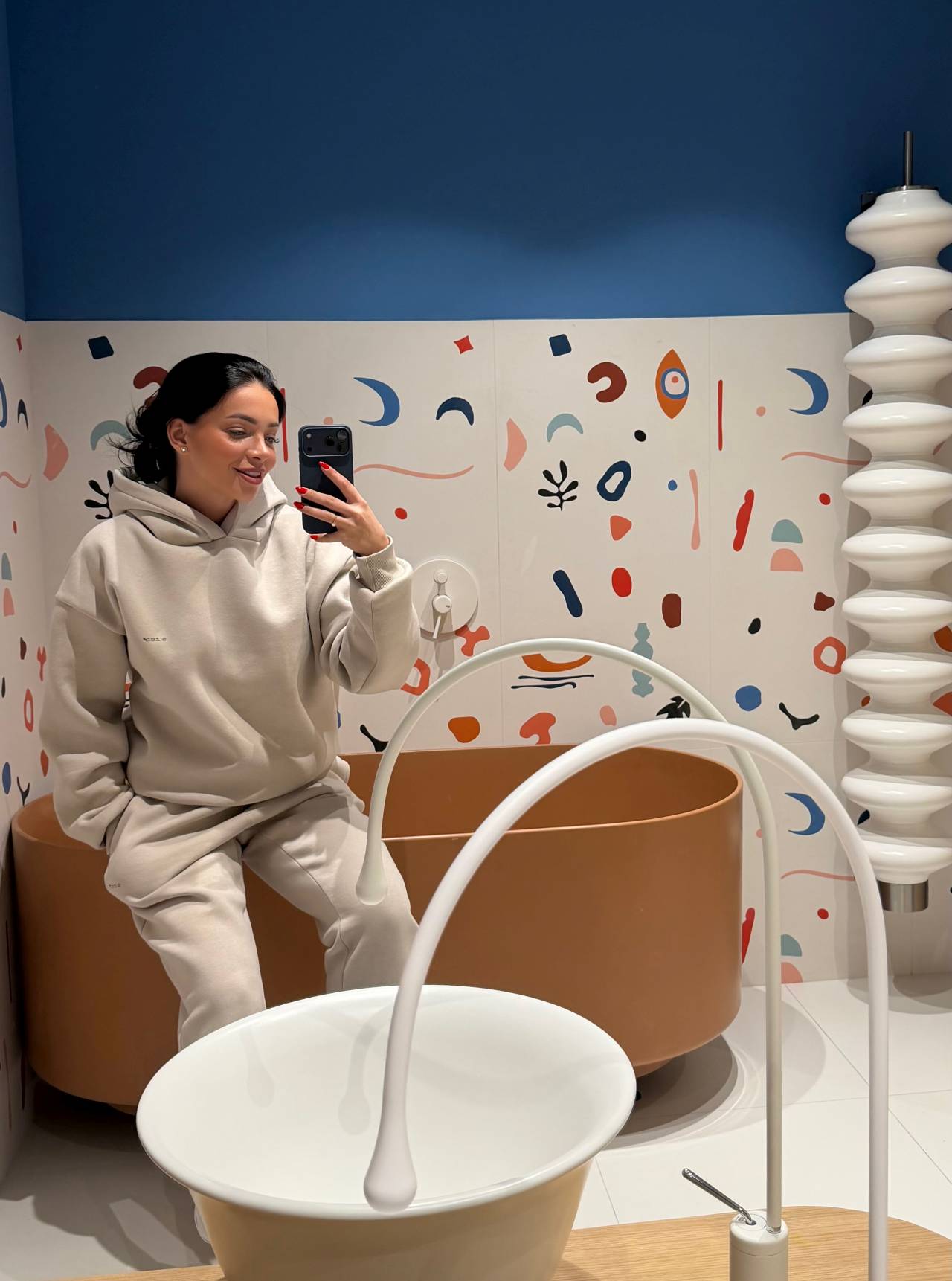 „Pločice Biscuit korišćene su kao neutralna osnova koja smiruje kompoziciju i daje prostoru ravnotežu“, navodi autorka.