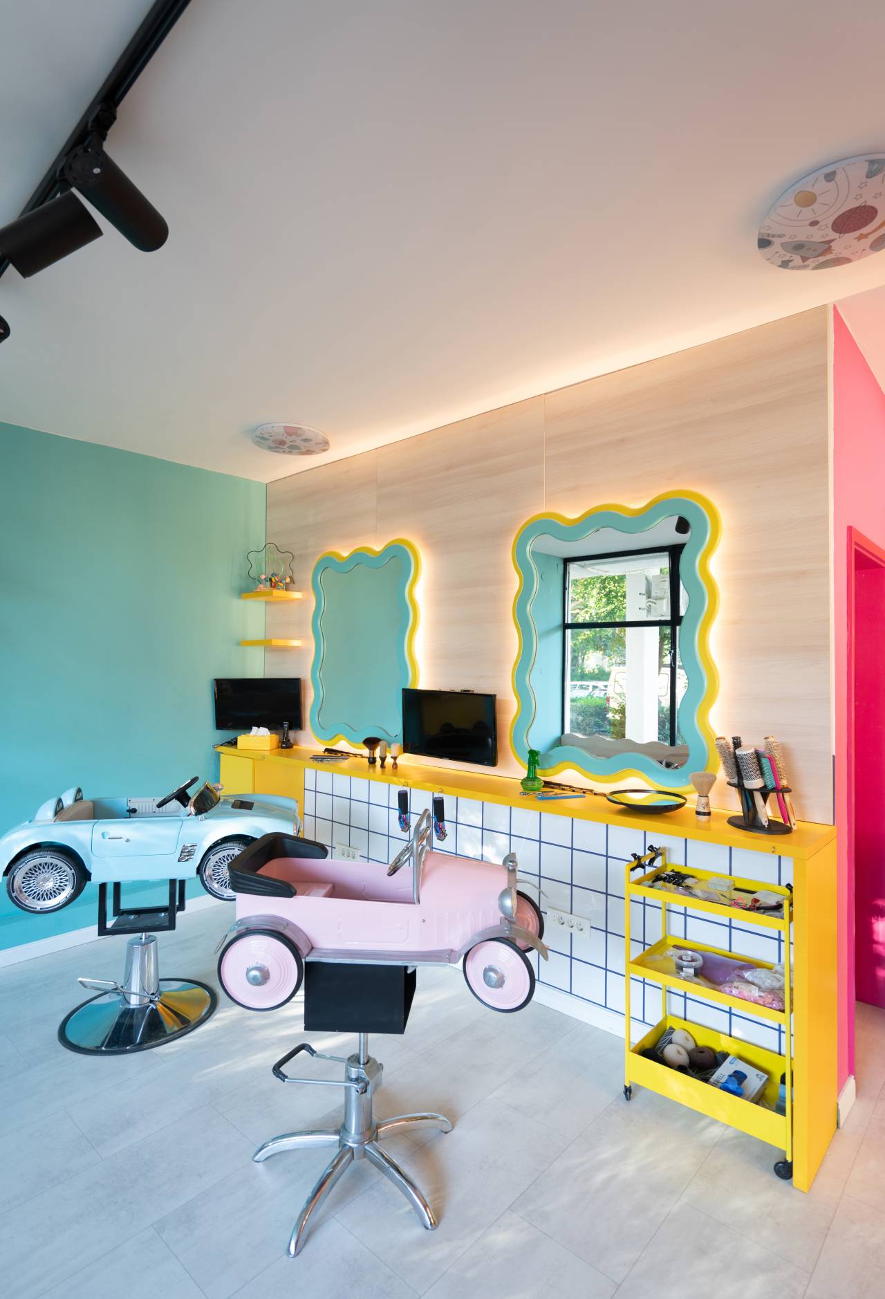 U vremenu kada enterijeri sve češće idu ka neutralnim tonovima i smirenim paletama, jedan dečji frizerski salon u Beogradu ide potpuno suprotnim putem.