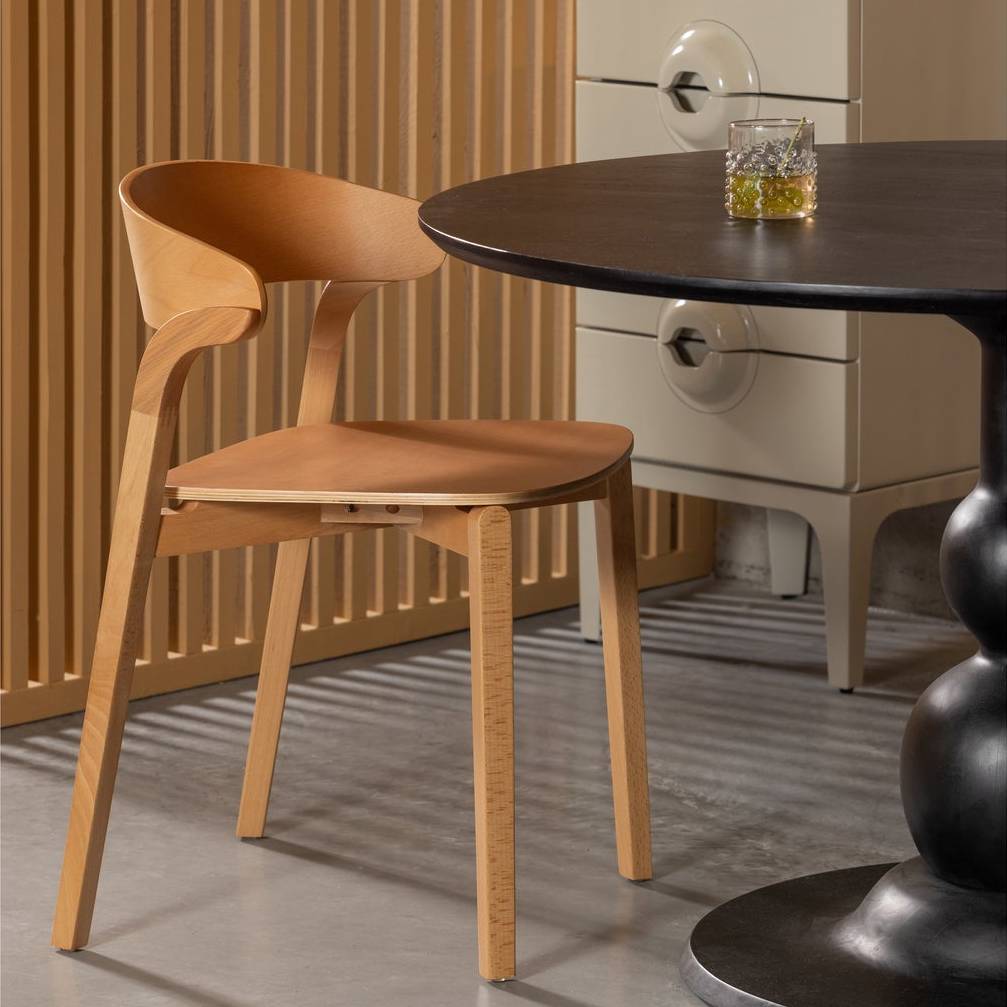 Cras je trpezarijska stolica izrađena od prirodnog jasenovog furnira, dok je konstrukcija od brezinog drveta. Ima udobno sedište i blago zakrivljen naslon.