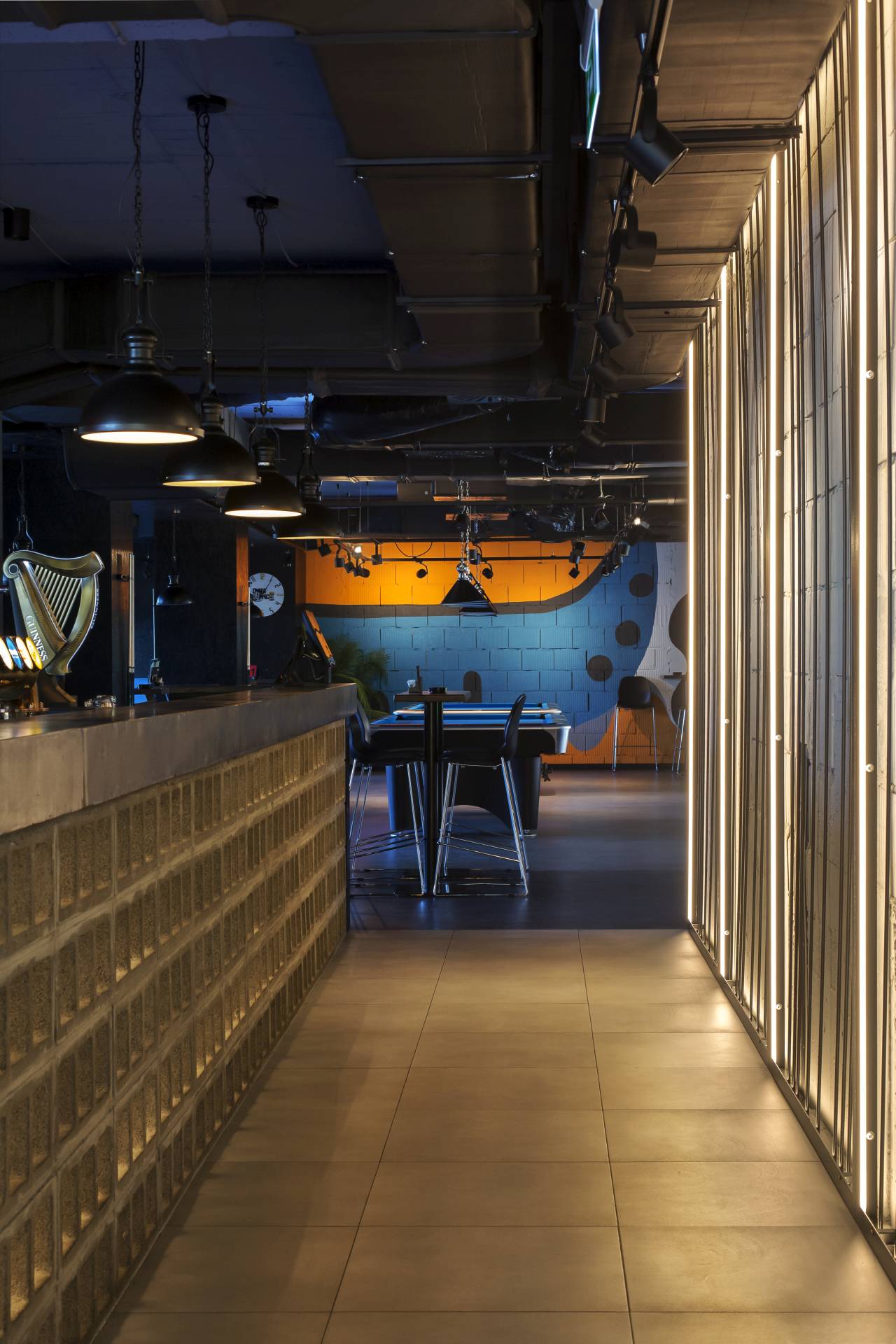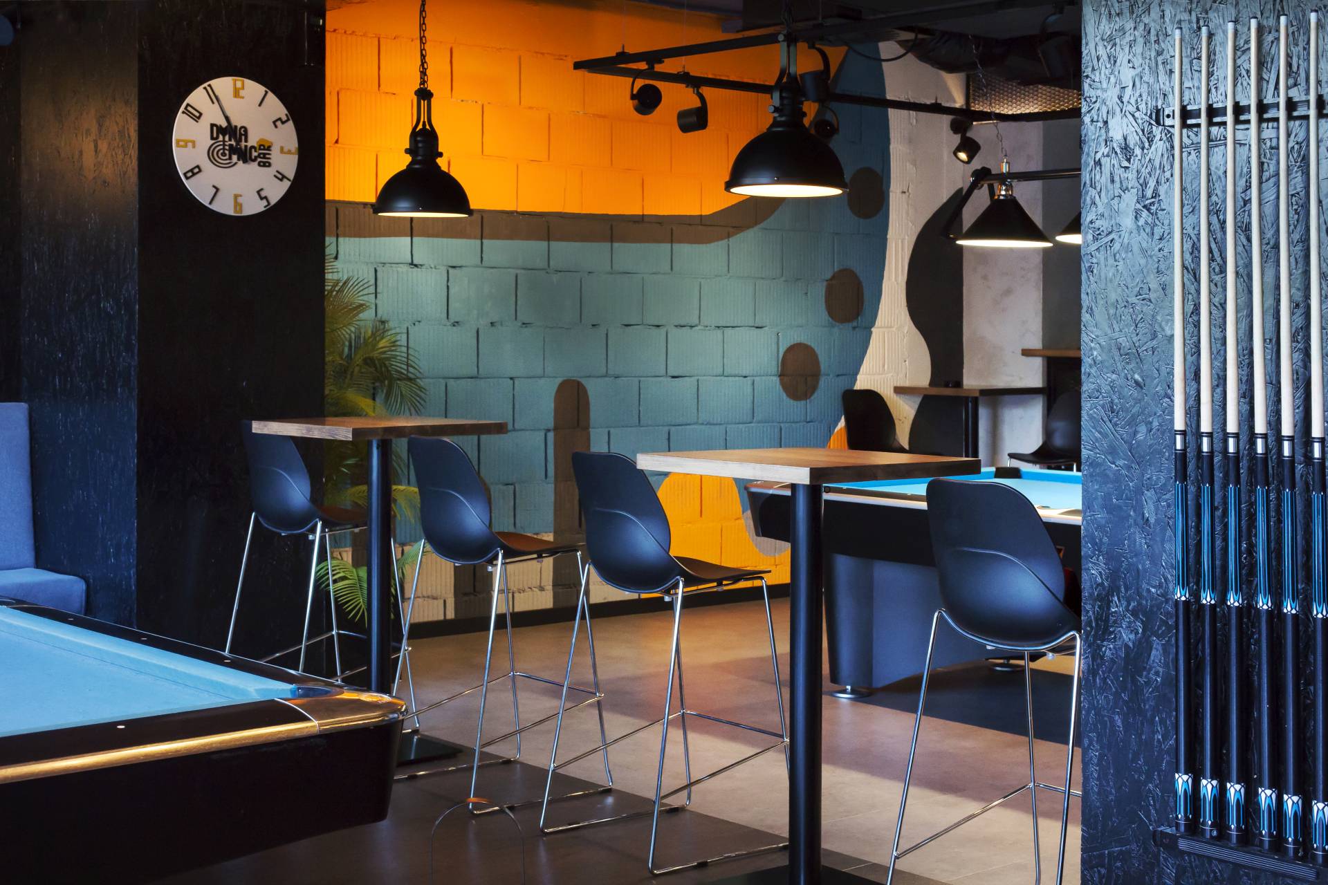 Projektantkinje su želele da kreiraju enterijer koji će tokom dana funkcionisati kao svetao i privlačan restoran za pauzu od posla, dok se u večernjim satima pretvara u živahan bar i mesto okupljanja uz bilijar i pikado.