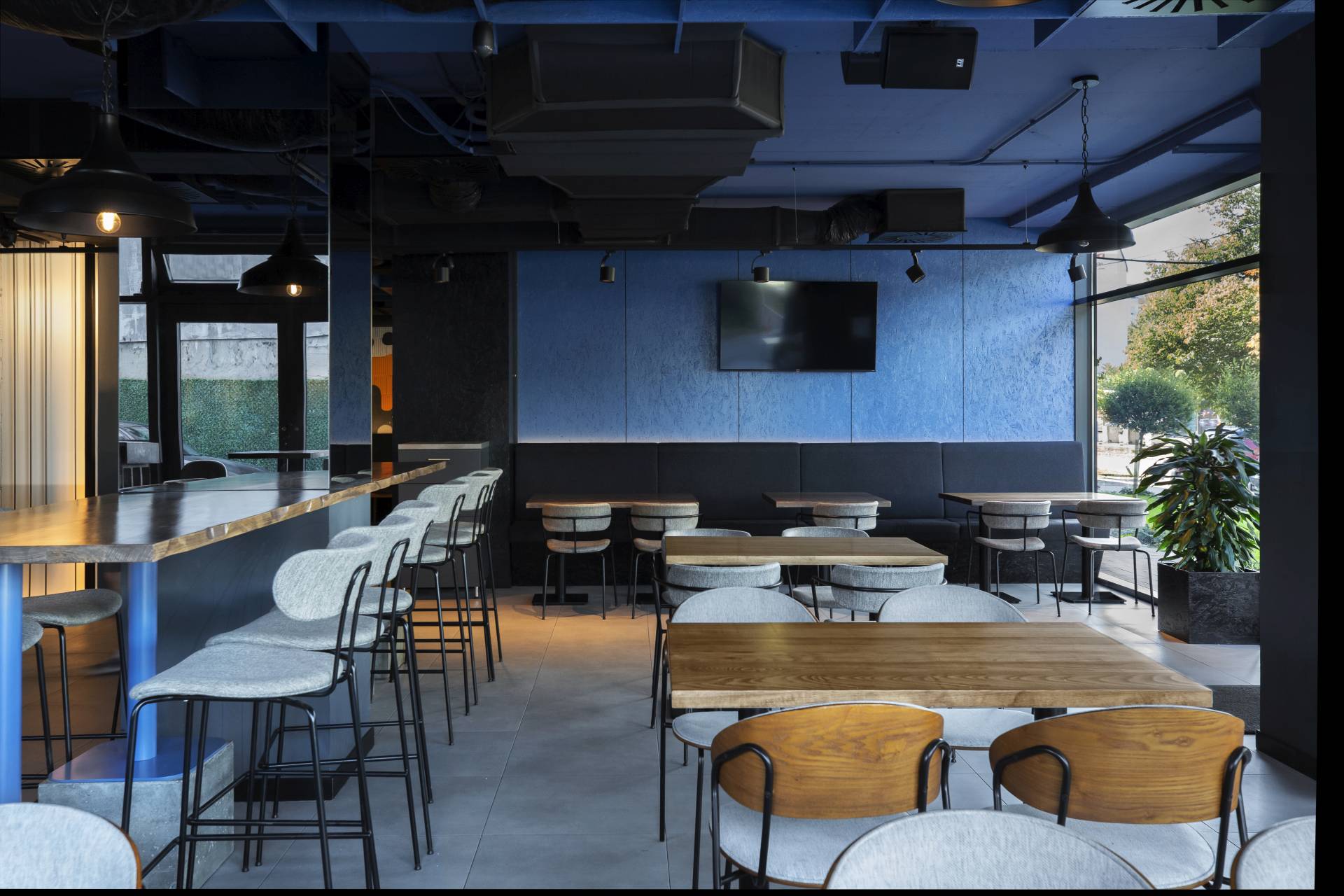 Dynamic Bar pokazuje kako industrijski elementi, sirovi materijali i jarke boje mogu da se uklope u enterijer koji je istovremeno robustan, moderan i topao.