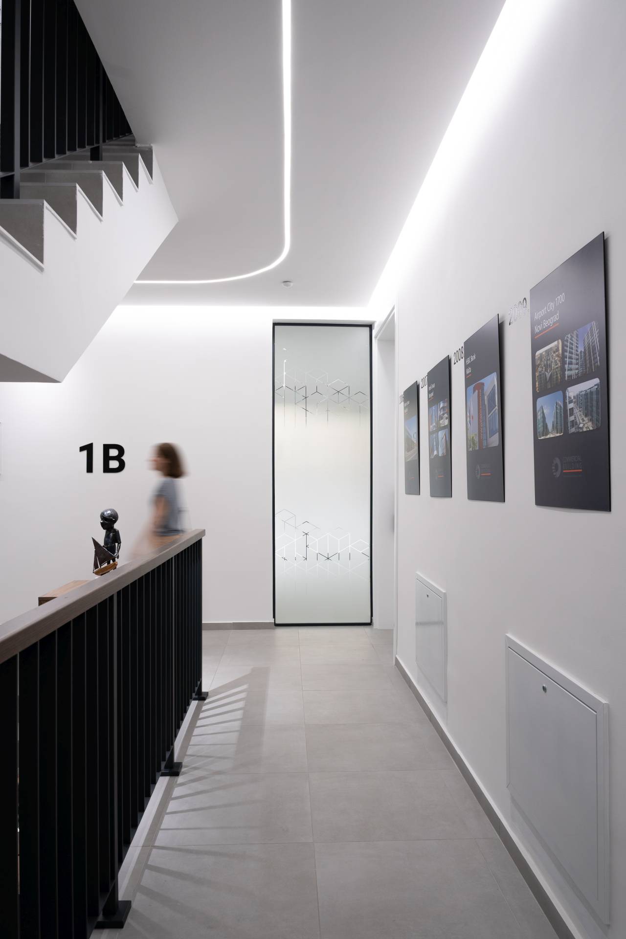 „Klijent je želeo da objekat ima veći kapacitet od trenutnih potreba, sa idejom da se višak prostora izdaje dok se kompanija ne proširi“, kaže Marinkov. „Ova strategija usmerila nas je na vertikalnu podelu objekta, tako da se južni deo koristi, a severni izdaje.“