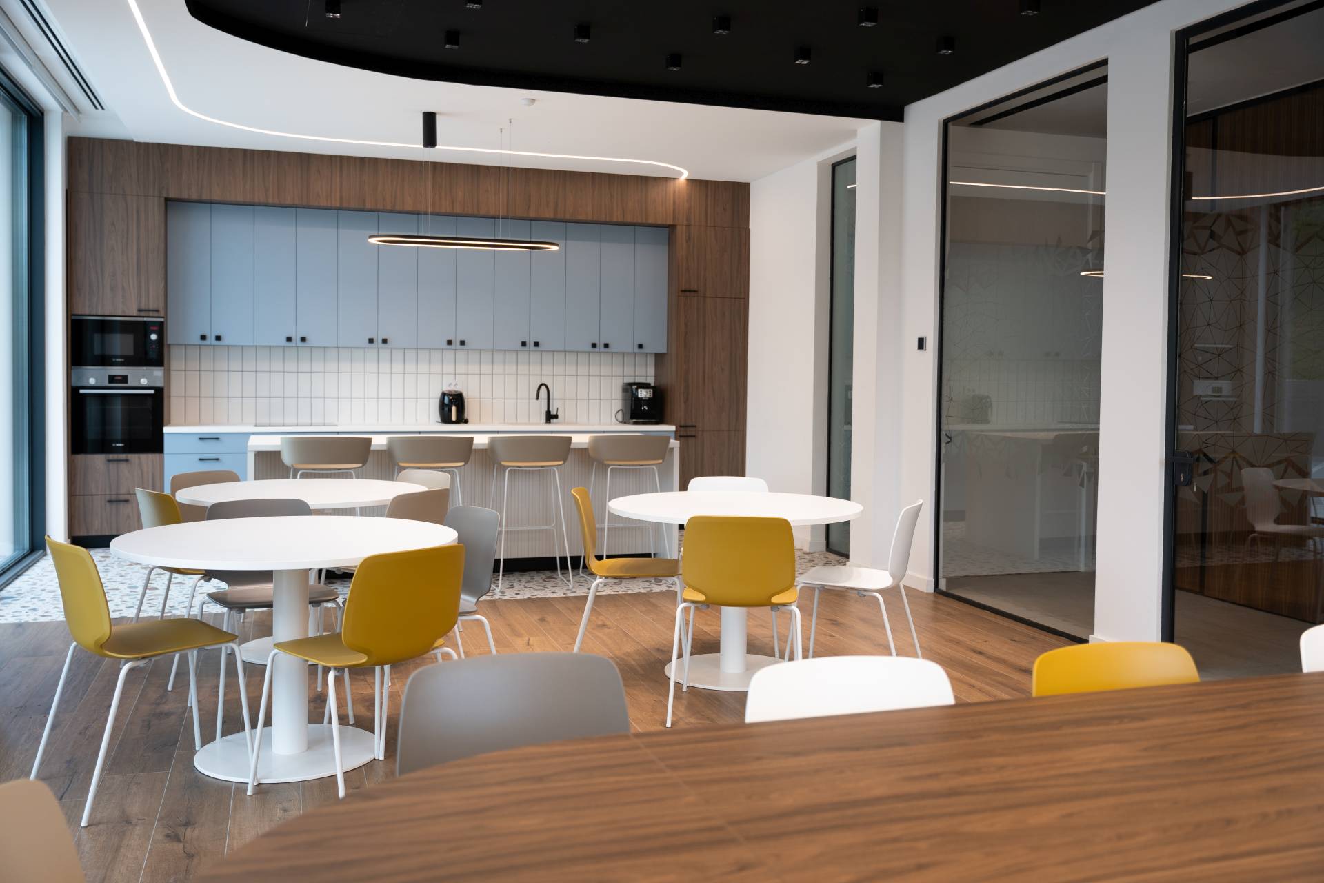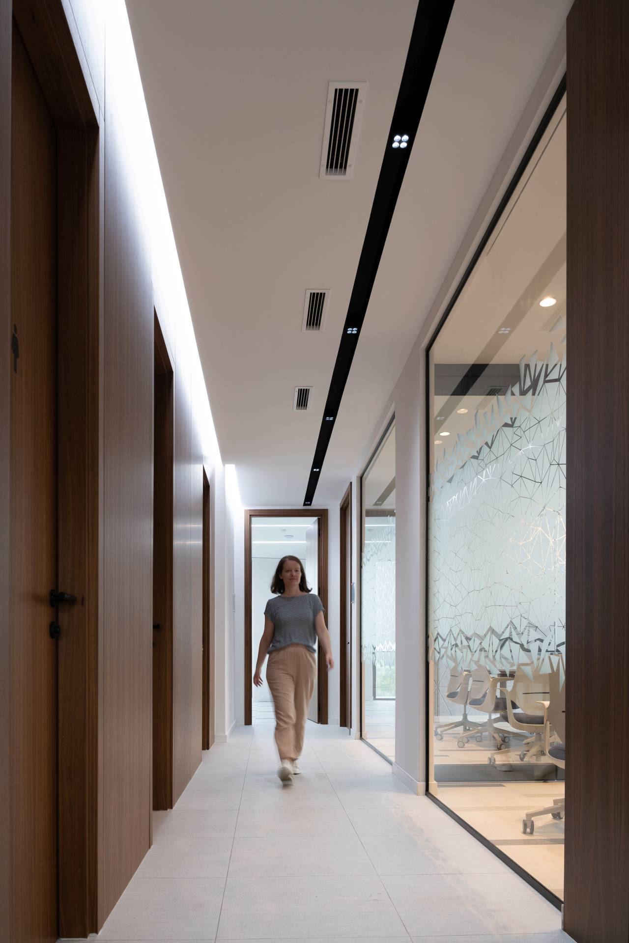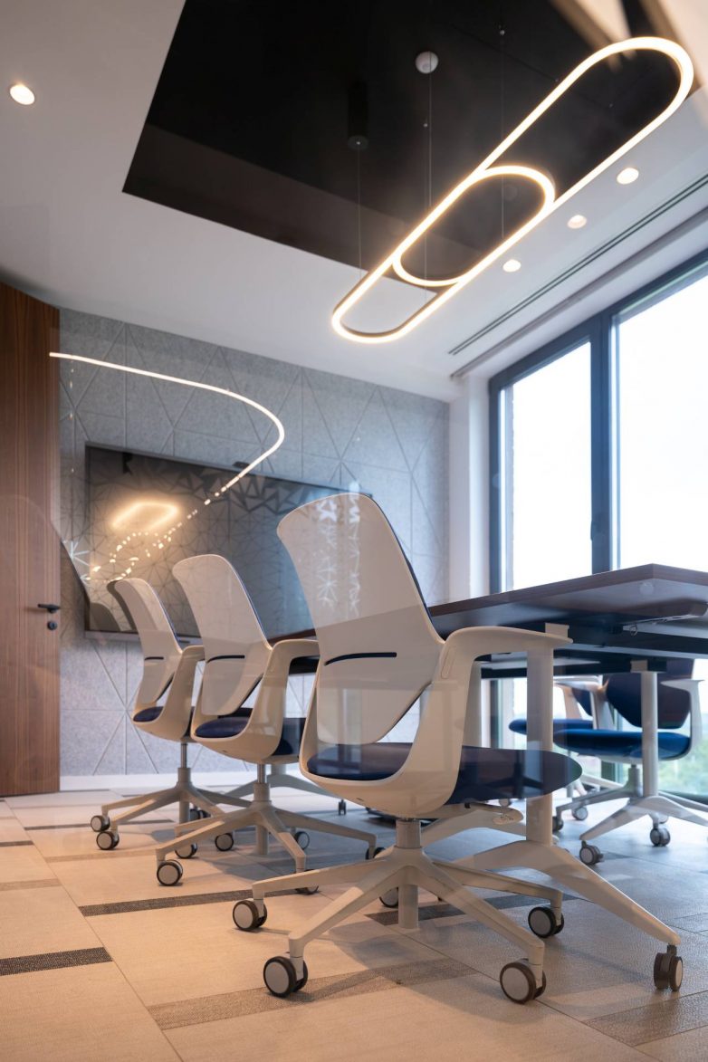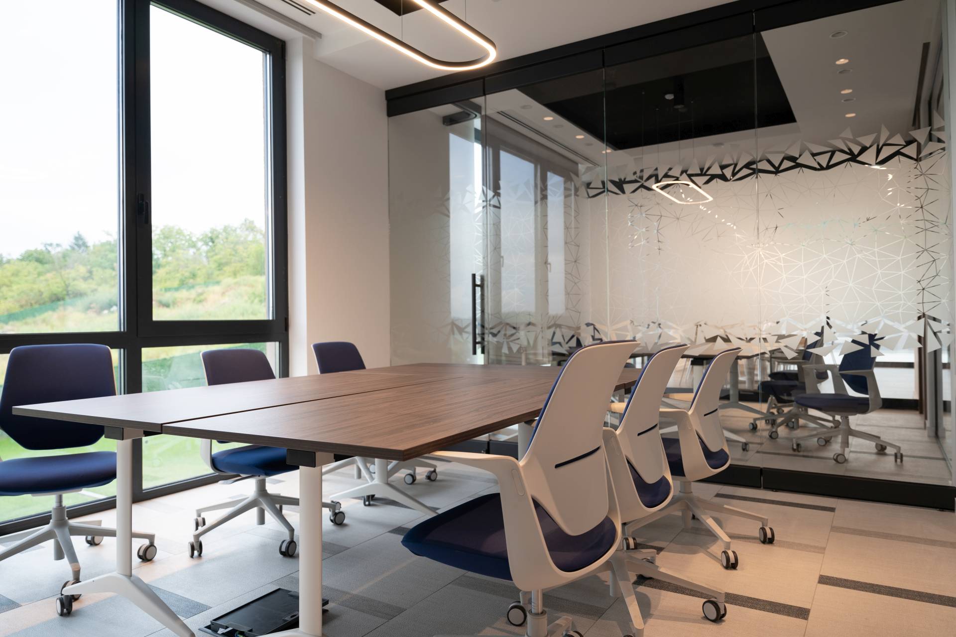 Zahvaljujući pažljivo odabranim materijalima sa akustičkim svojstvima, poput medijapana i zidnih panela, konferencijske sale i kancelarije pružaju mir i koncentraciju.