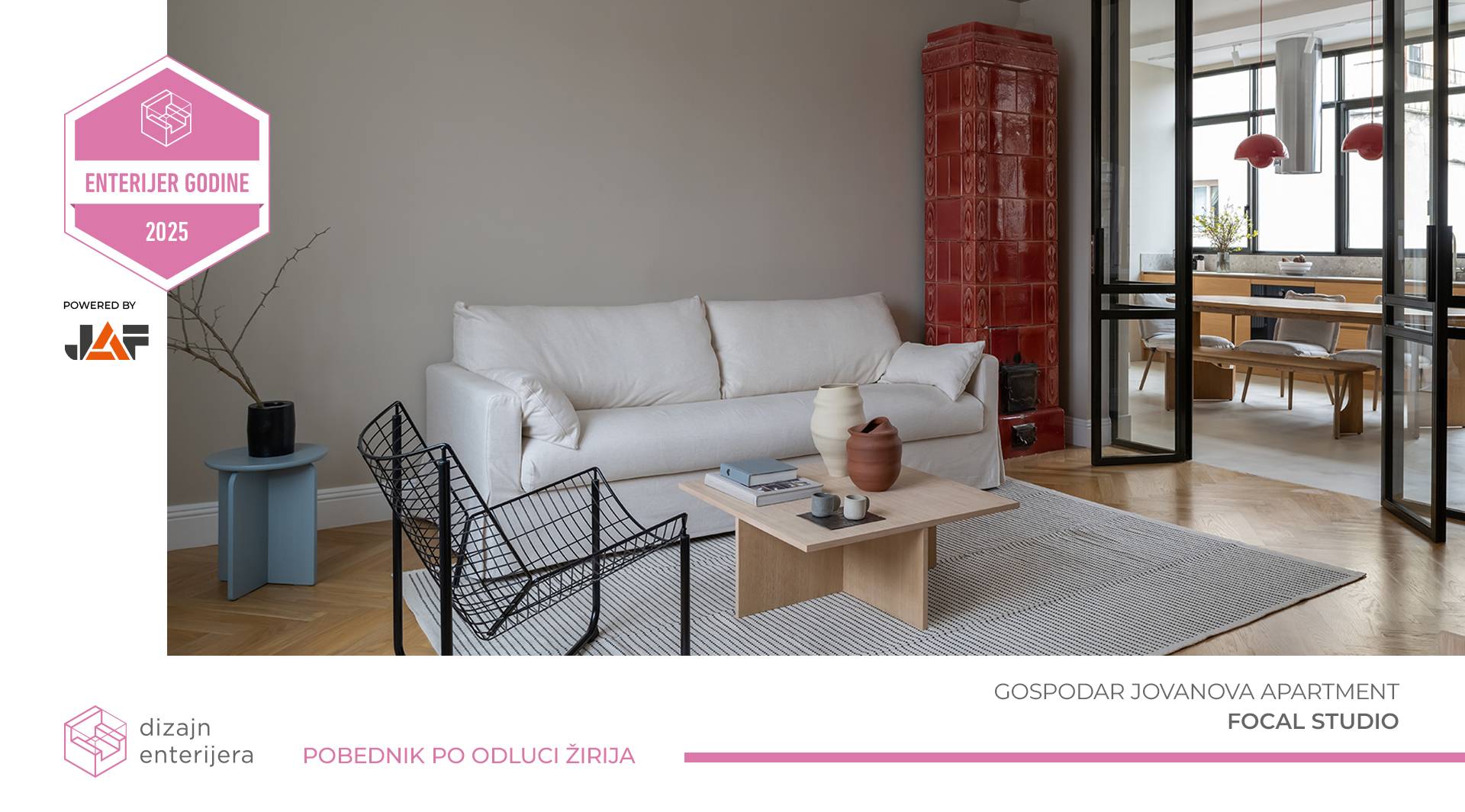 Proglašen je Enterijer godine 2025 – Powered by JAF! Stručni žiri je jednoglasno odlučio da Zlatnu šarku dodeljuje projektu Gospodar Jovanova Apartment u Beogradu koji potpisuje Focal Studio.