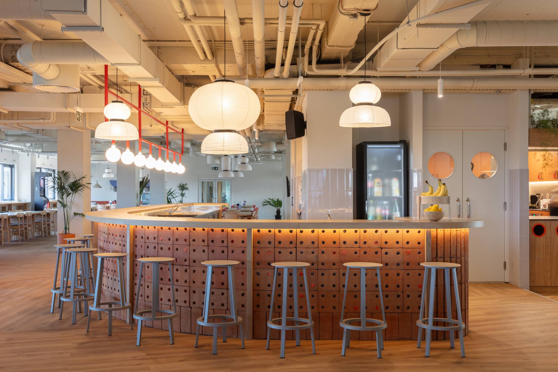 Bilo je neophodno osmisliti sistem koji je fleksibilan, dugoročno održiv i spreman da primi nove timove. Studio objašnjava: „Ovo je postignuto uvođenjem manjih i većih zona za okupljanje, uz jasno definisanu kružnu komunikaciju.“