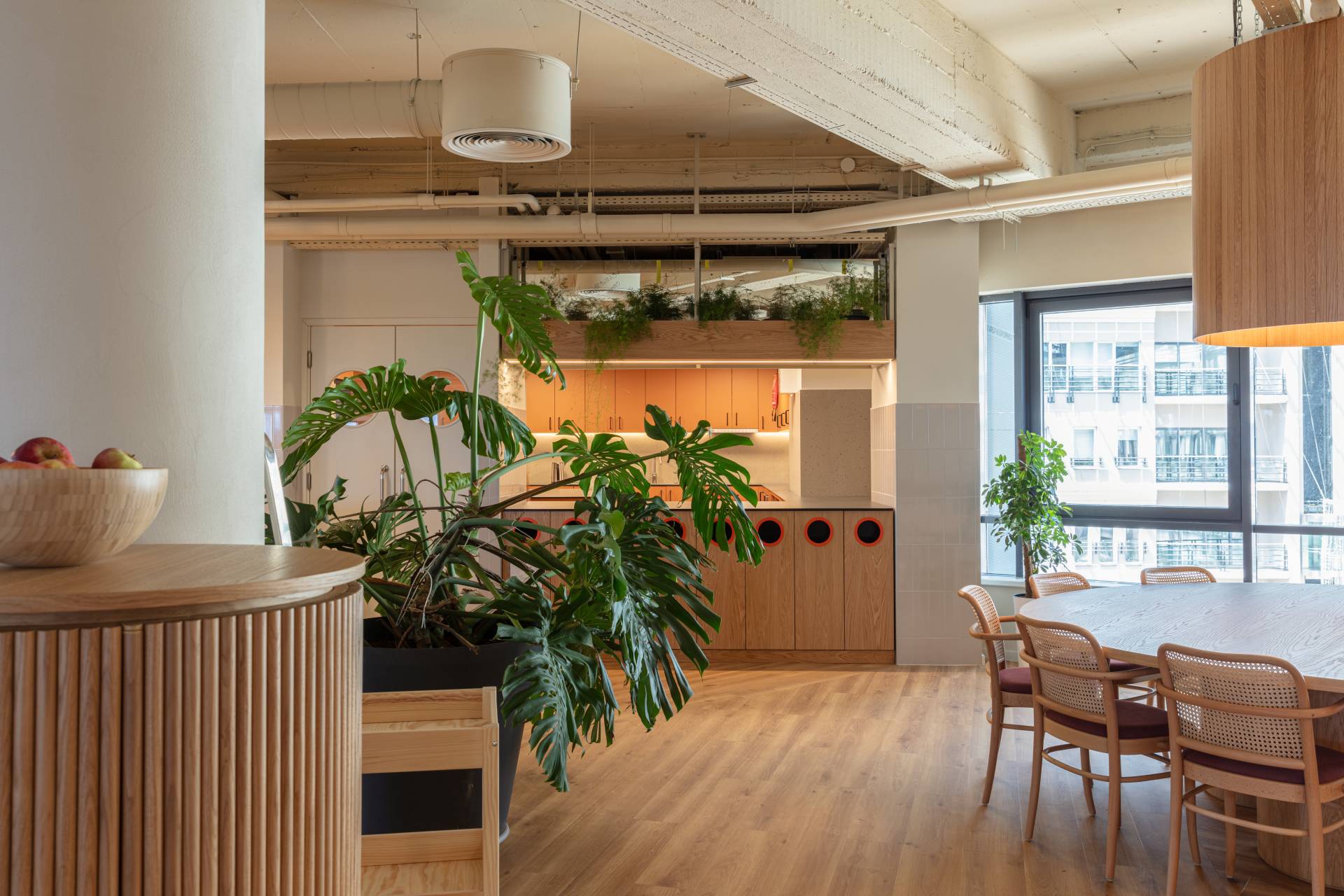 Posebno mesto zauzima kantina, prostor za koji zaposleni spontano koriste naziv „ognjište“. To je mesto susreta svih timova, prostor koji prirodno funkcioniše kao centralna tačka komunikacije i zajedništva.