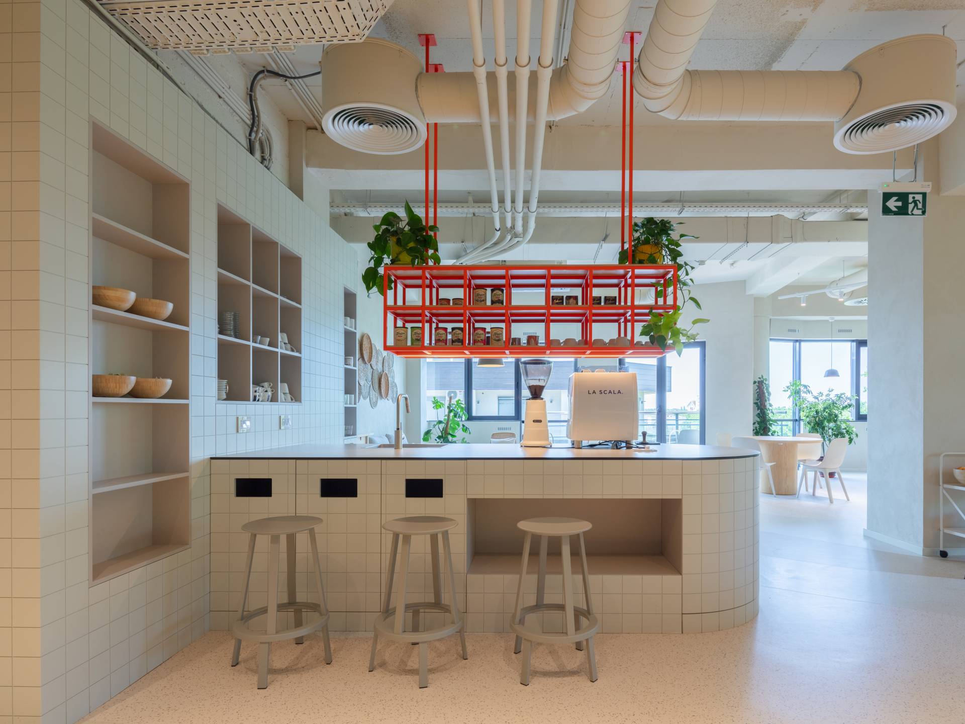 Uz veštačko osvetljenje, prostor ima obilje prirodnog svetla zahvaljujući organizaciji objekta.