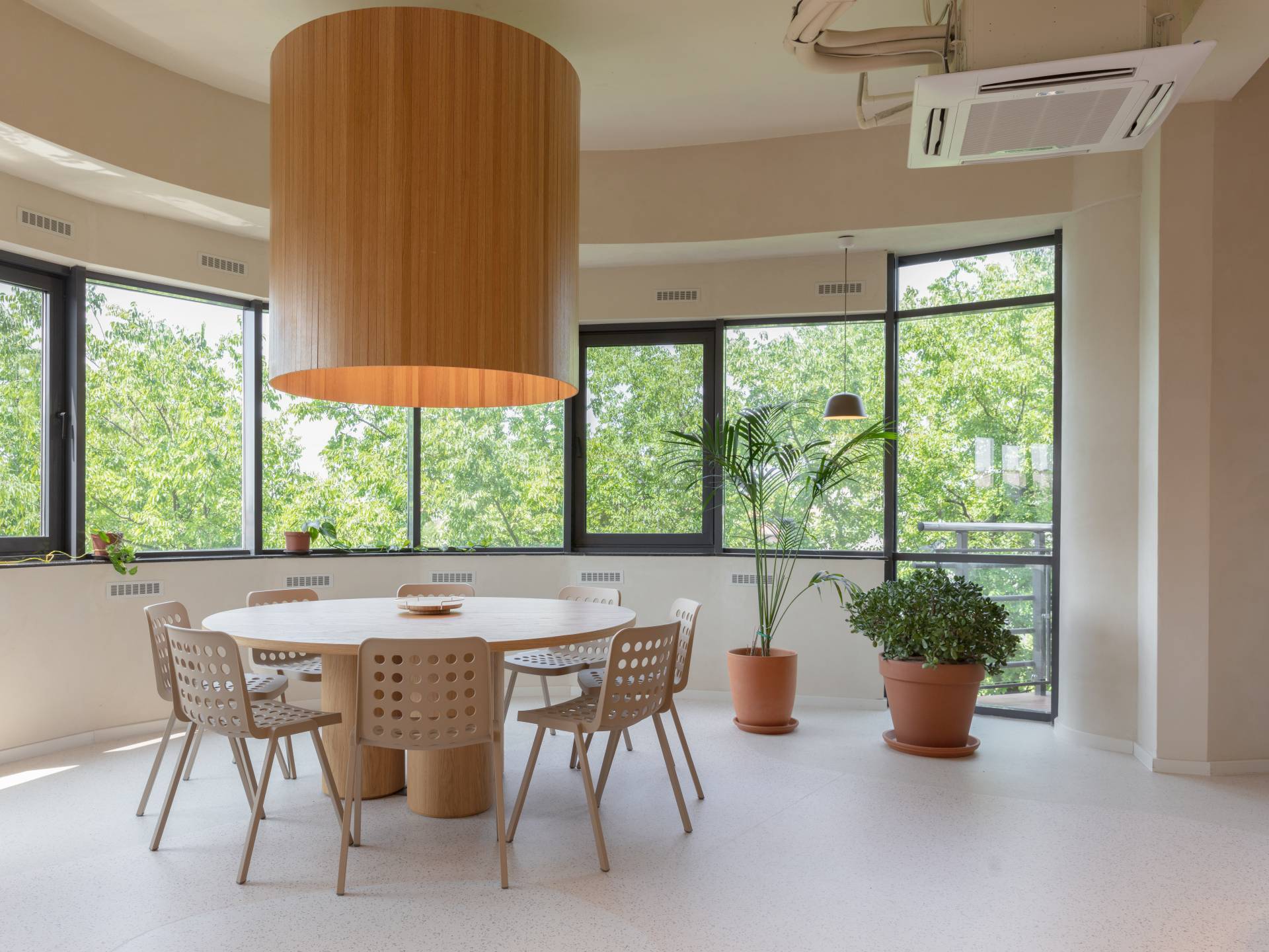 Ovaj radni prostor donosi toplinu, prirodne tonove i elemente lokalnog zanatstva, stvarajući ambijent u kojem se rad, druženje i opuštanje prirodno prepliću.