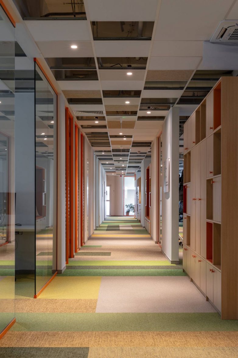 Studio posebno ističe važnost modularnih korpusa koji imaju ključnu ulogu u organizaciji prostora. Oni služe kao pregrade između hodnika i radnih zona, definišu prostor bez prekidanja protoka svetla i omogućavaju privatnost i koncentraciju.