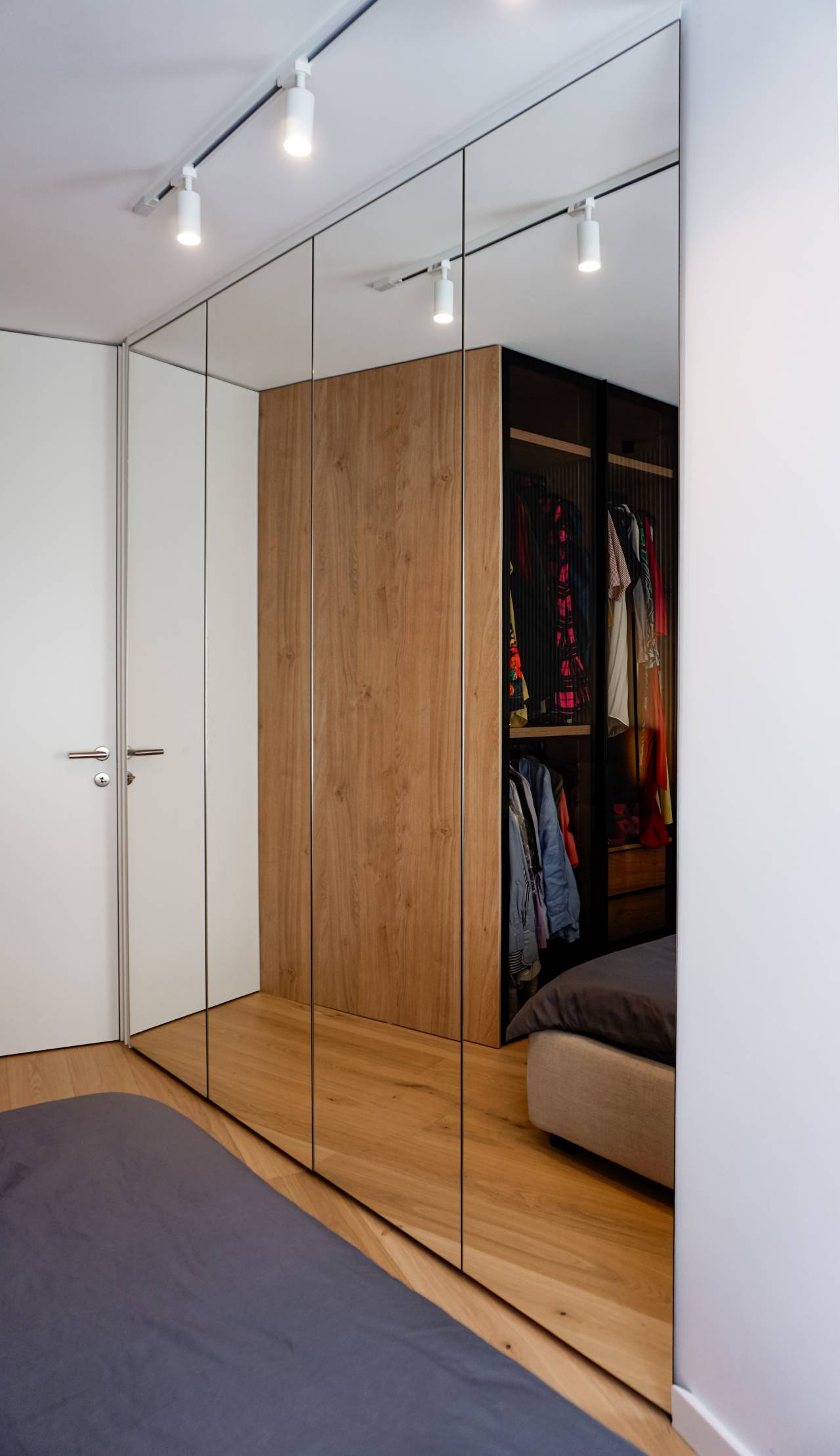 Projekat obuhvata spavaću sobu sa velikim garderobnim kapacitetom, kupatilo sa komfornom tuš-kabinom i skrivenim tehničkim zonama, kao i multifunkcionalni dnevni prostor koji objedinjuje kuhinju, trpezariju i boravak.