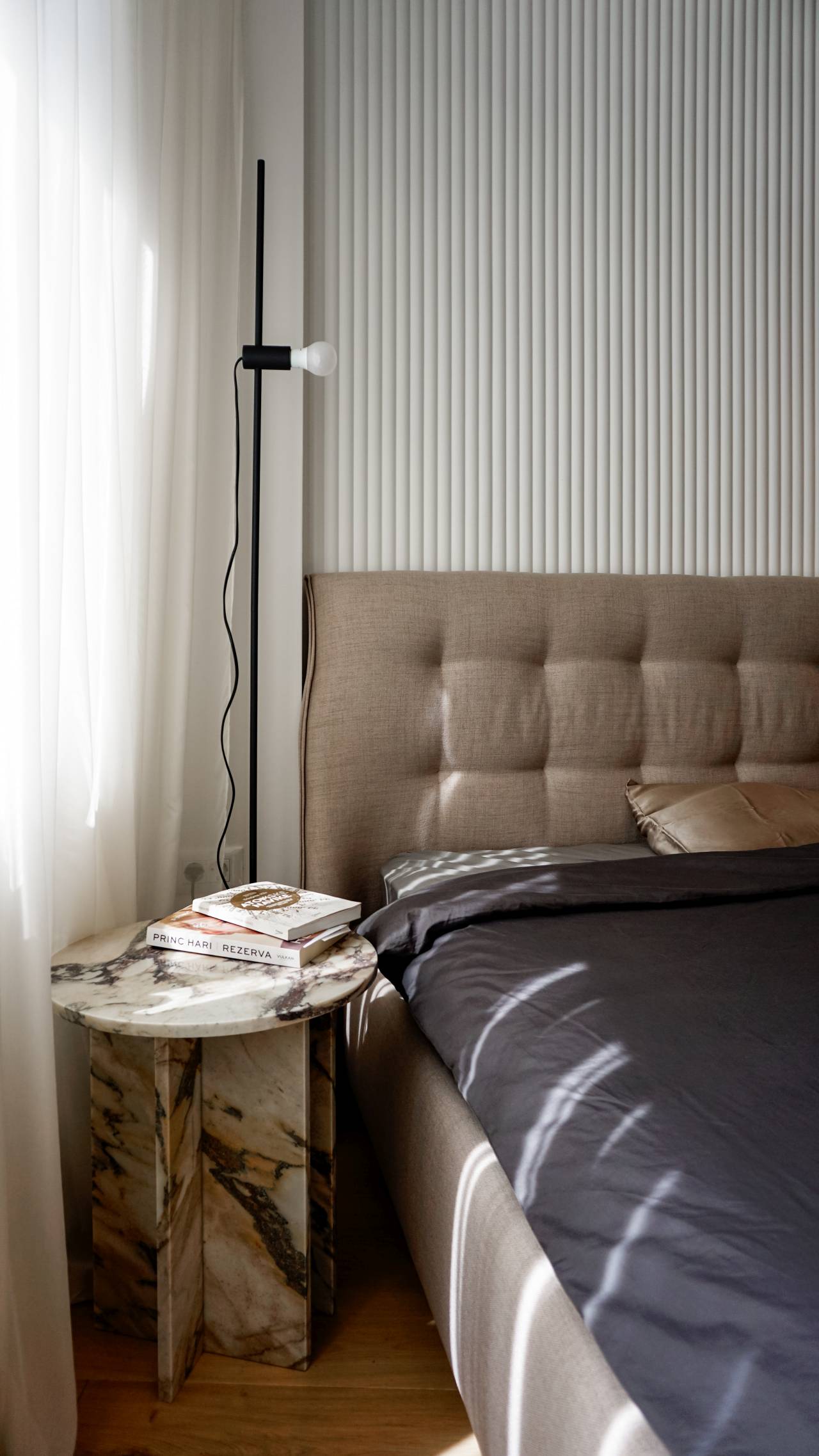 „Inspiracija je proistekla iz same geometrije stana – trapezasta osnova, krivine i kosine postale su alat, a ne ograničenje„, objašnjavaju autori projekta.