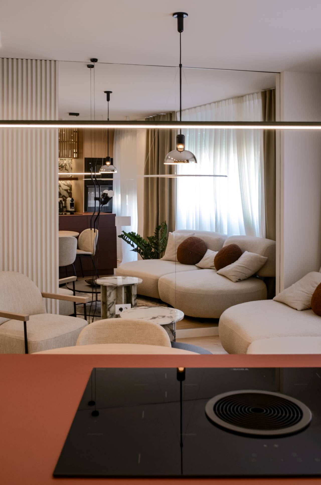 „Svaki estetski element ima funkcionalno opravdanje. Oblik nameštaja, izbor materijala i ogledala nisu dekoracija, već alat za bolju komunikaciju, kretanje i percepciju prostora„, naglašavaju iz Inka Studija.