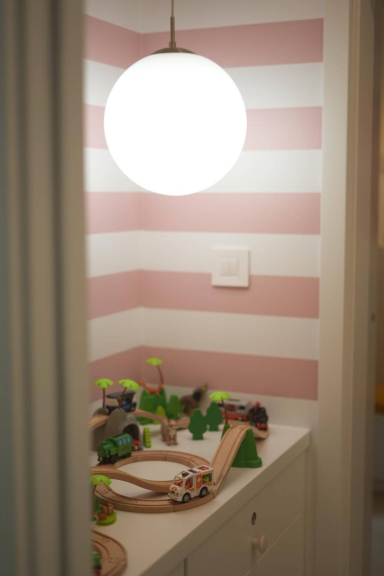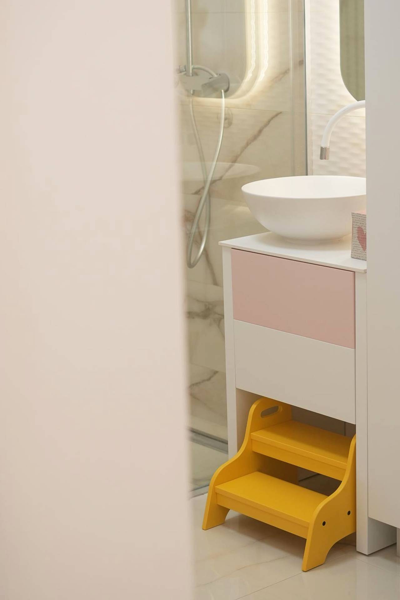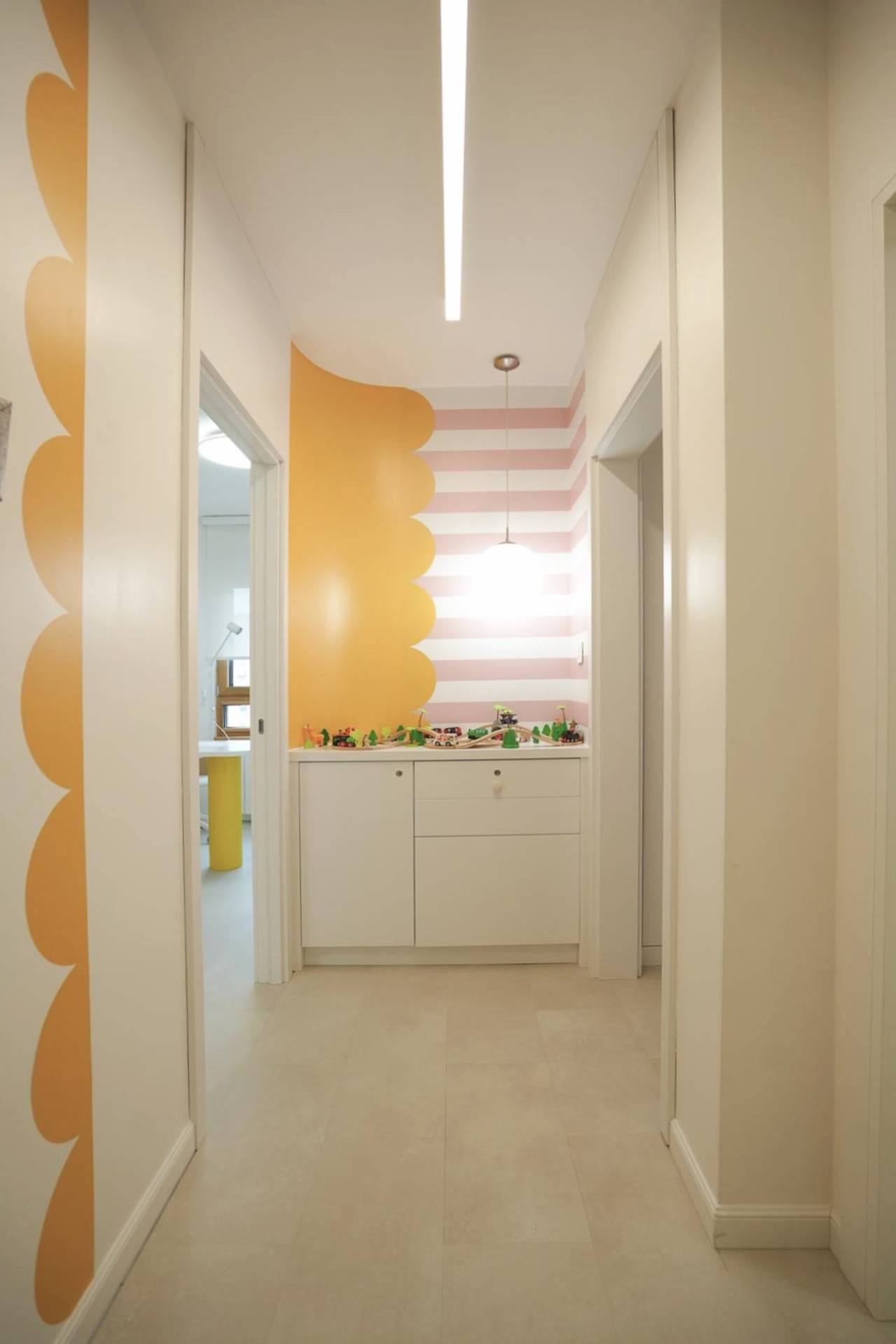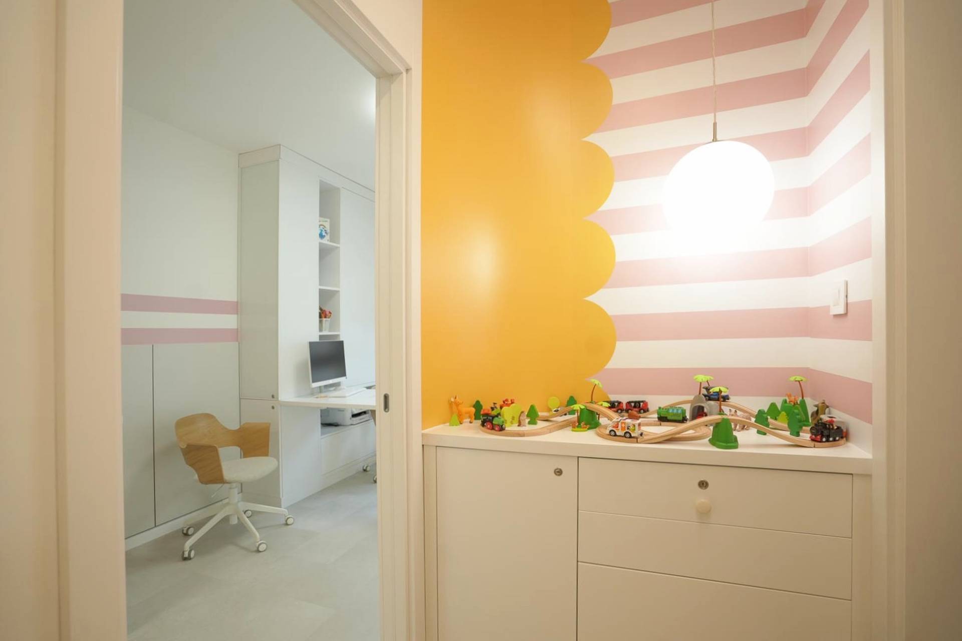 Kroz ceo enterijer provlače se osnovne boje – žuta i roze u formi linija i polukrugova, dok su ilustracije zeka, meda i pčelica upotpunile izgled i dale finalni pečat dizajnu.