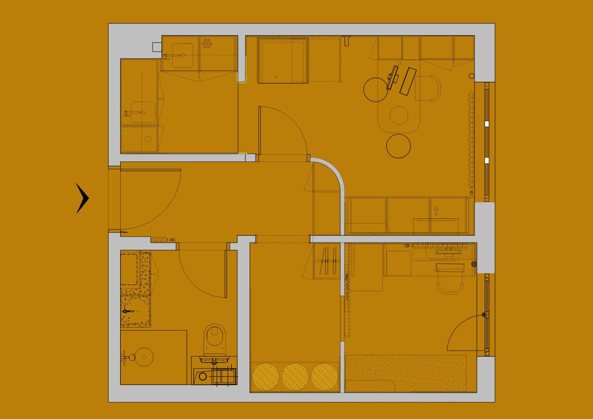 Postojeća kuhinja preuređena je u laboratorijski deo za smeštanje opreme, dok je mini-kuhinja potpuno odvojena i zatvorena frontovima. Oko radnog stola lekara organizovani su zatvoreni ormari za odlaganje.