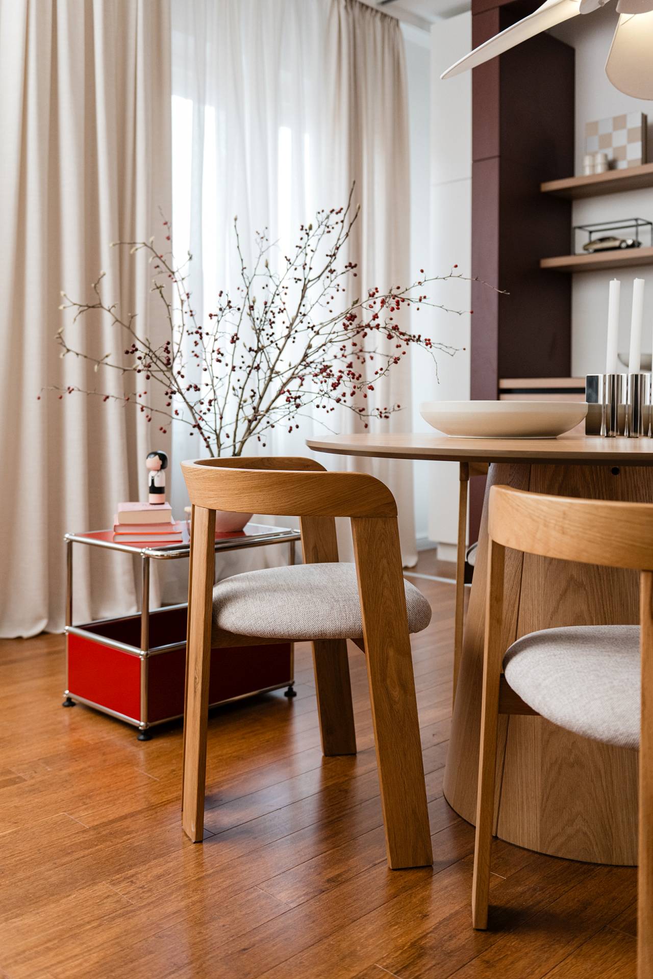 Arhitektkinja Sanja Bralić zadužena za dizajn enterijera imala je jasnu viziju kako da dizajnerske komade nameštaja uklopi u postojeći okvir stana, bez narušavanja njegovog karaktera.