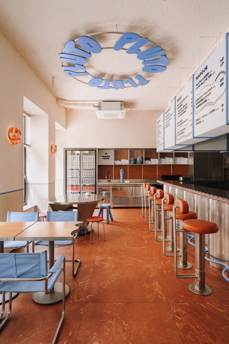 Pluto je zamišljen kao živ, energičan restoran u kojem se priprema hrane odvija na otvorenom i direktno komunicira sa prostorom.