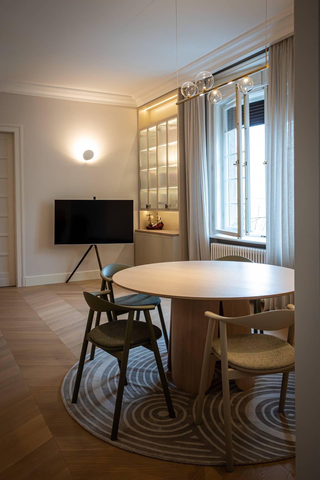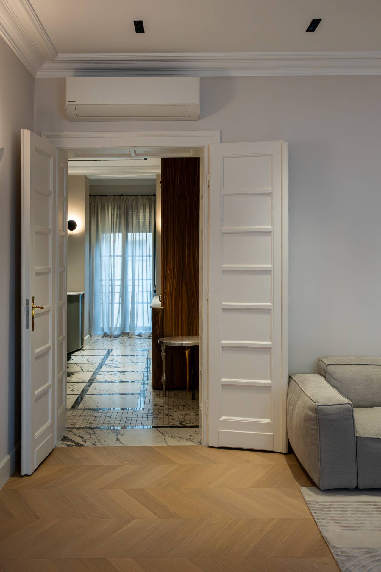 „Najveći izazov bio je uskladiti postojeću arhitekturu sa savremenim načinom života, uz očuvanje duha starog stana. Posebnu pažnju posvetili smo proporcijama, kako novi elementi ne bi narušili sklad koji prostor već ima“, ističu autori projekta.