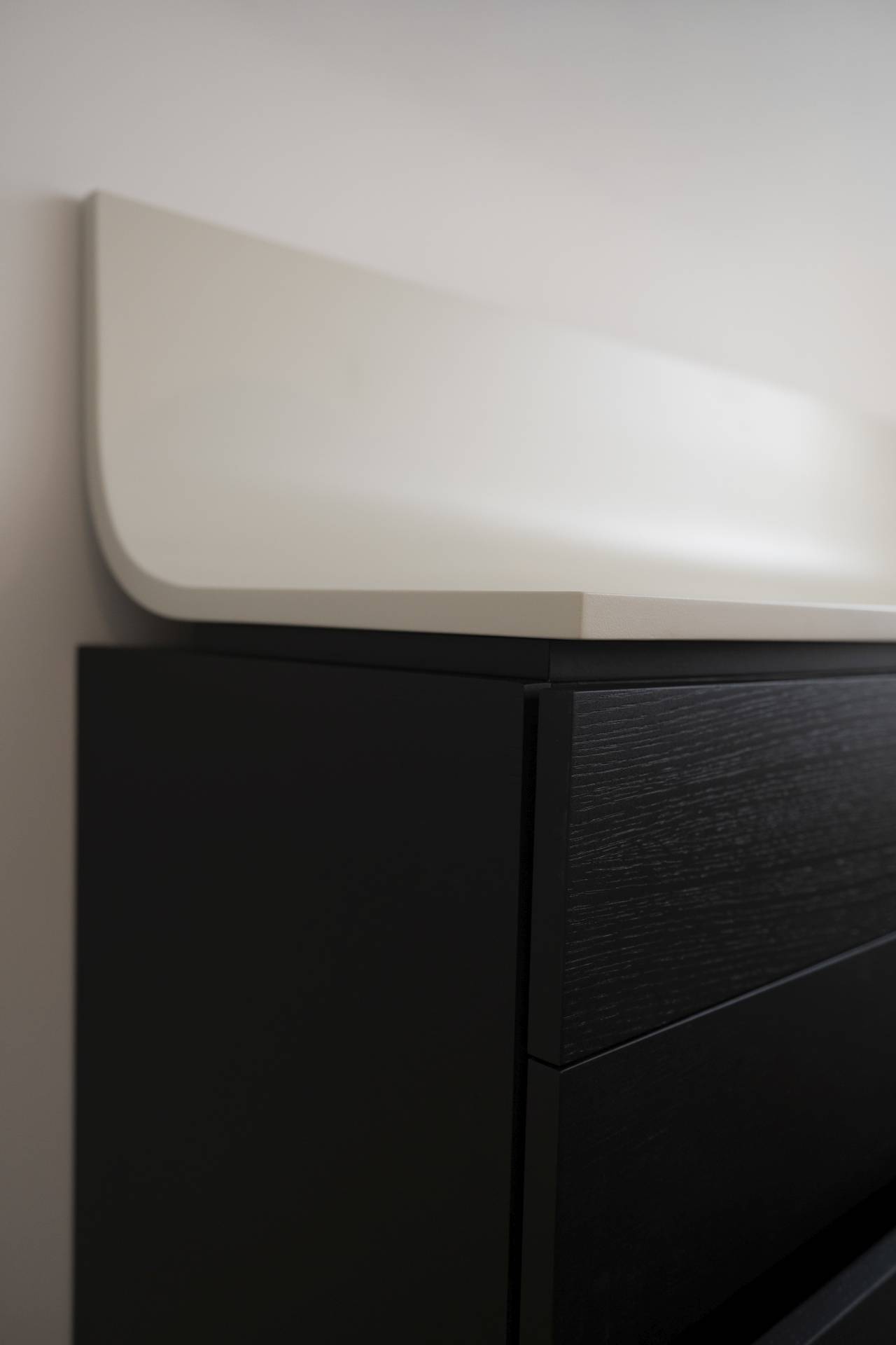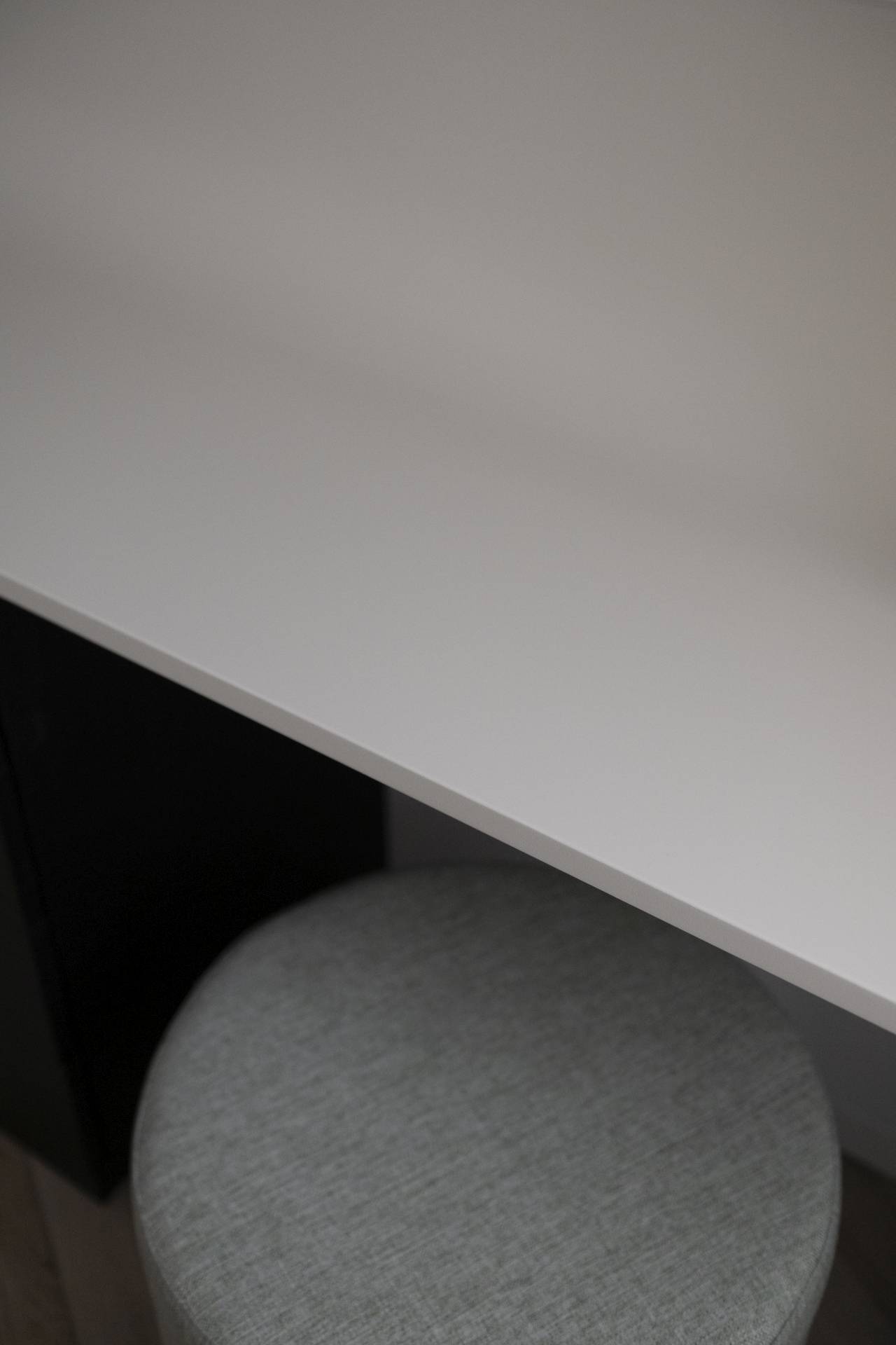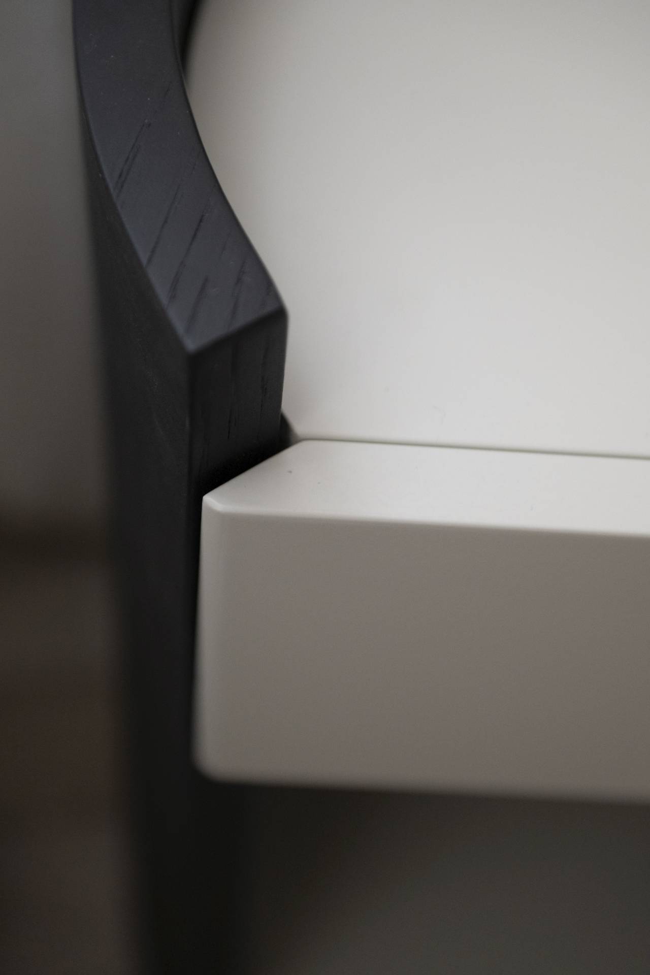 Svi ključni komadi nameštaja projektovani su specijalno za ovaj prostor. Umesto gotovih komercijalnih rešenja, nameštaj je tretiran kao integralni deo arhitektonskog koncepta.