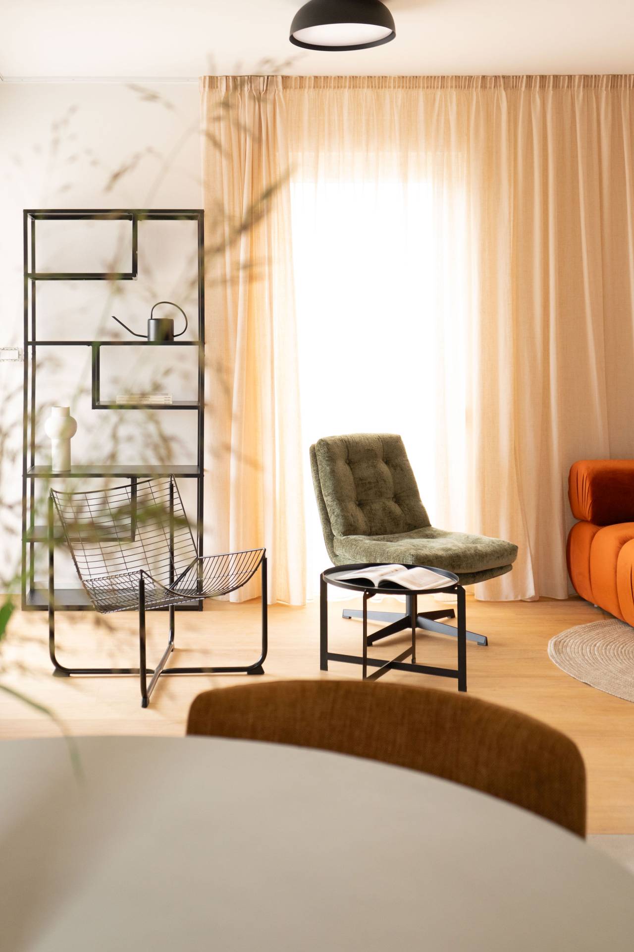 Posebnu ulogu imaju zavese od lana, koje ublažavaju obilje prirodnog svetla u stanu jugoistočne orijentacije i doprinose osećaju mekoće u prostoru.