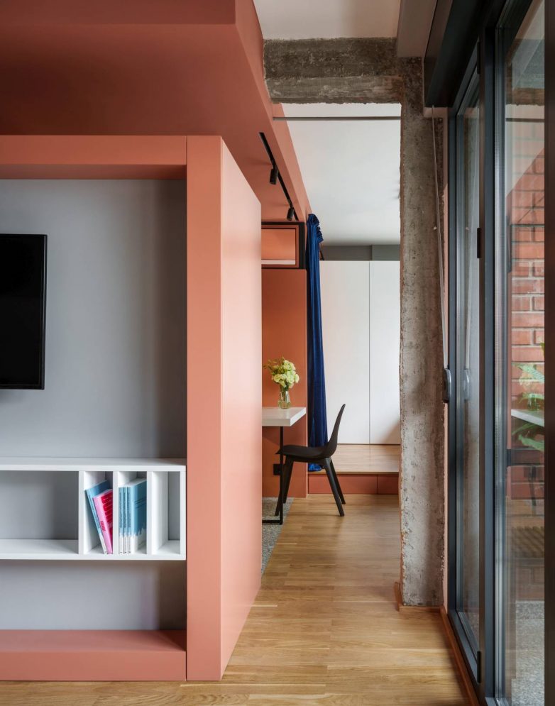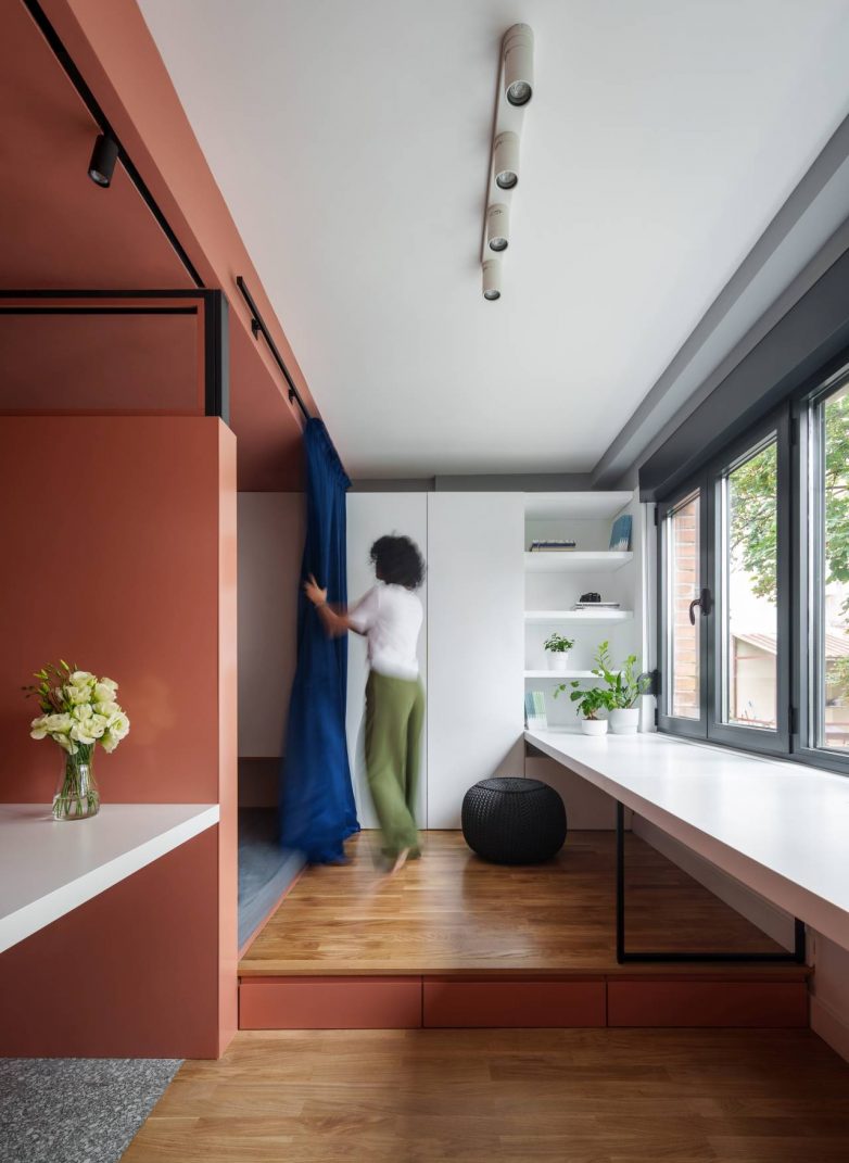„Nismo želeli da zatvaramo prostor vratima, zato je niša zamišljena kao mesto koje može da bude izdvojeno, ali i potpuno otvoreno„, objašnjava tim.