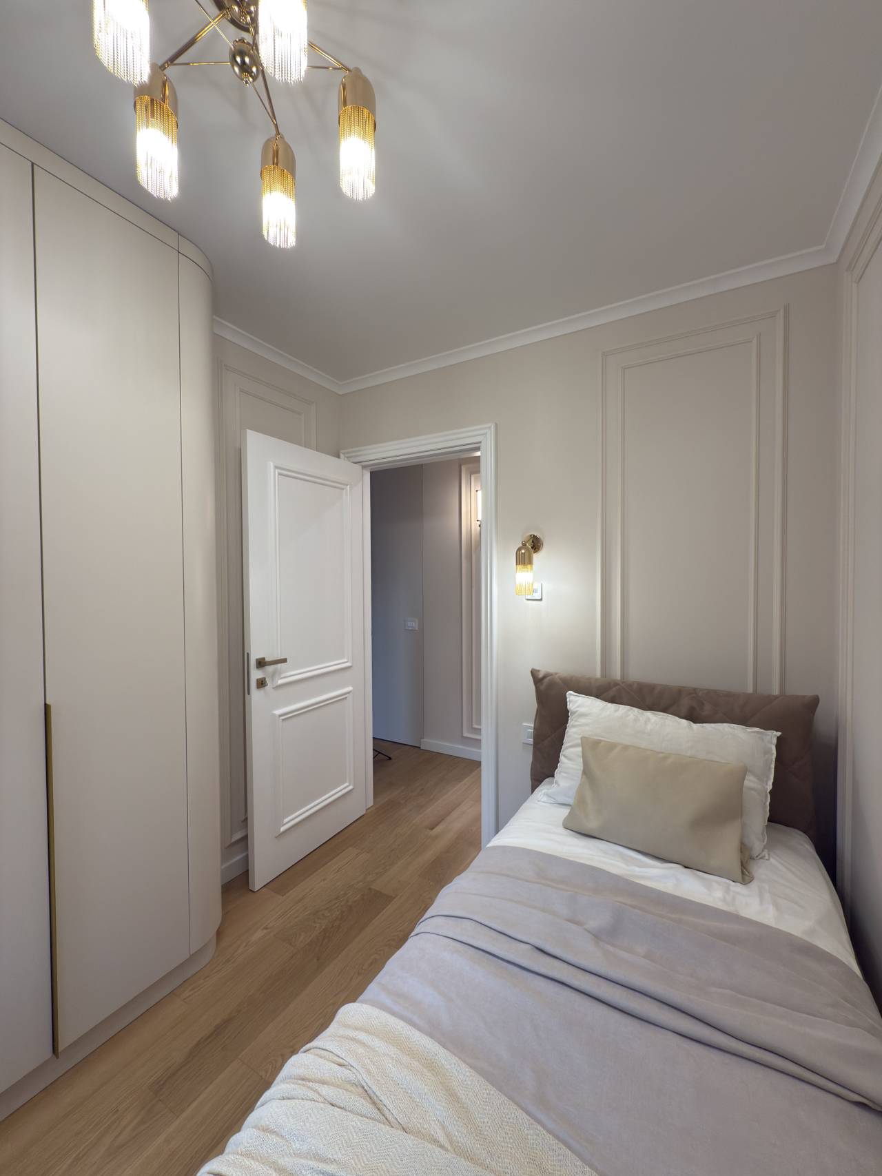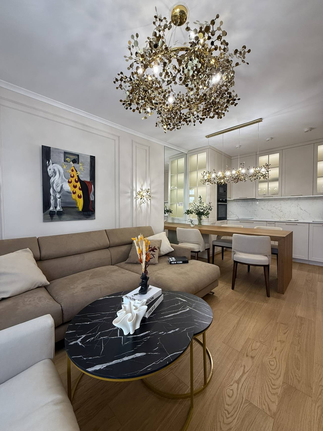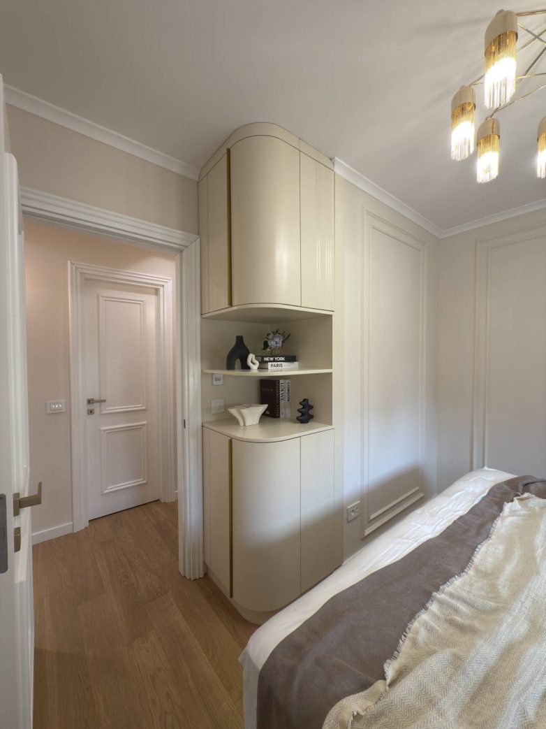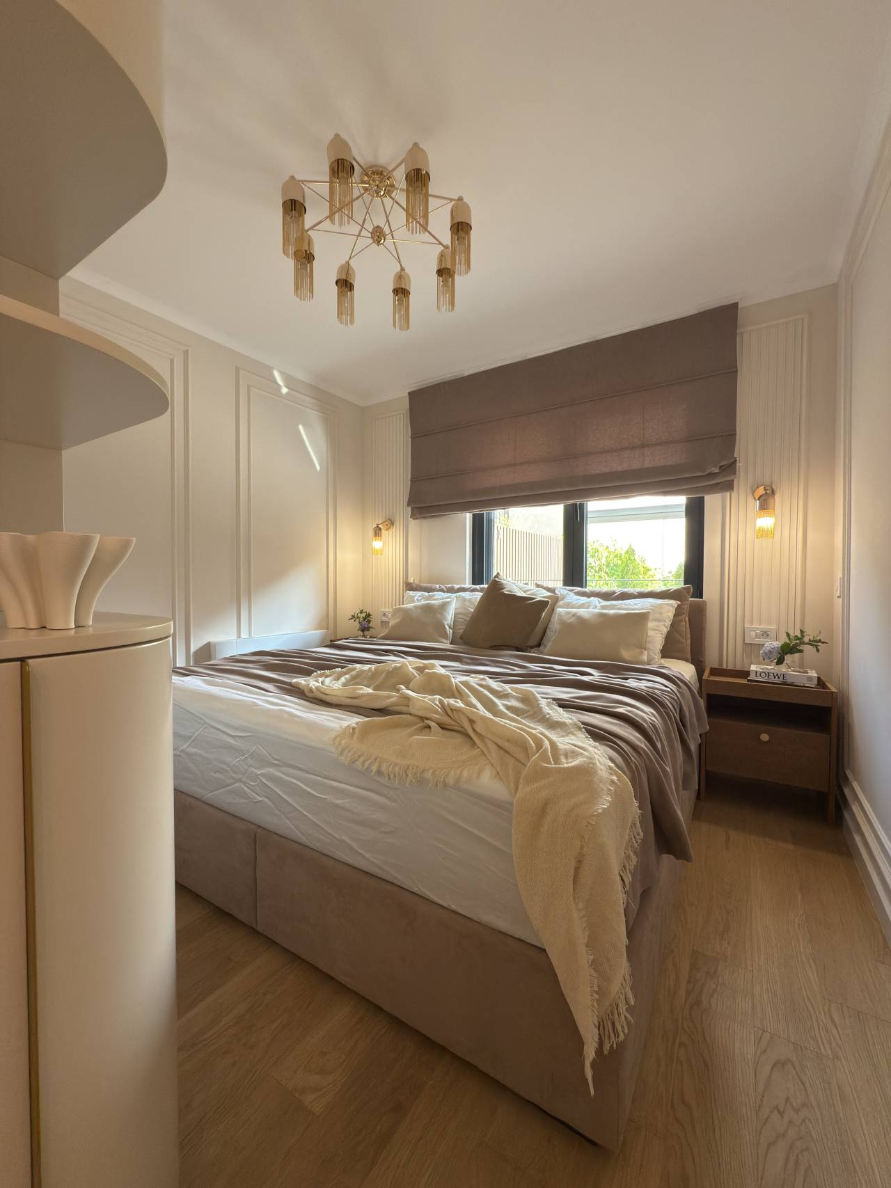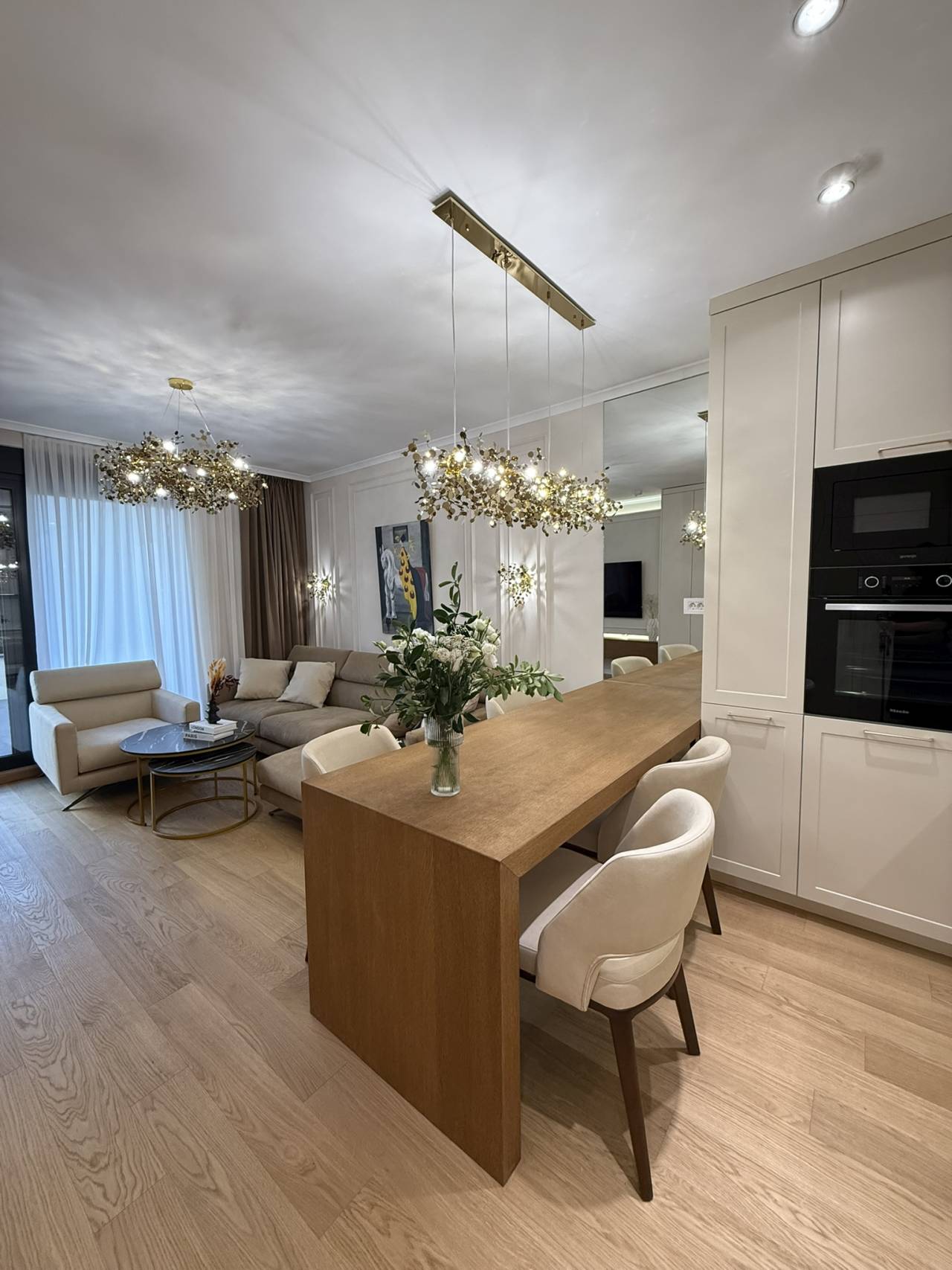 Na prvi pogled, ovaj porodični stan na Vračaru od 65 kvadrata deluje smireno, elegantno i vrlo promišljeno. Neutralna paleta, klasične zidne lajsne i bogata rasveta stvaraju utisak bezvremenog enterijera, dok savremeni komadi nameštaja i jasna organizacija prostora čine da stan funkcioniše lako i prirodno u svakodnevnom životu.
