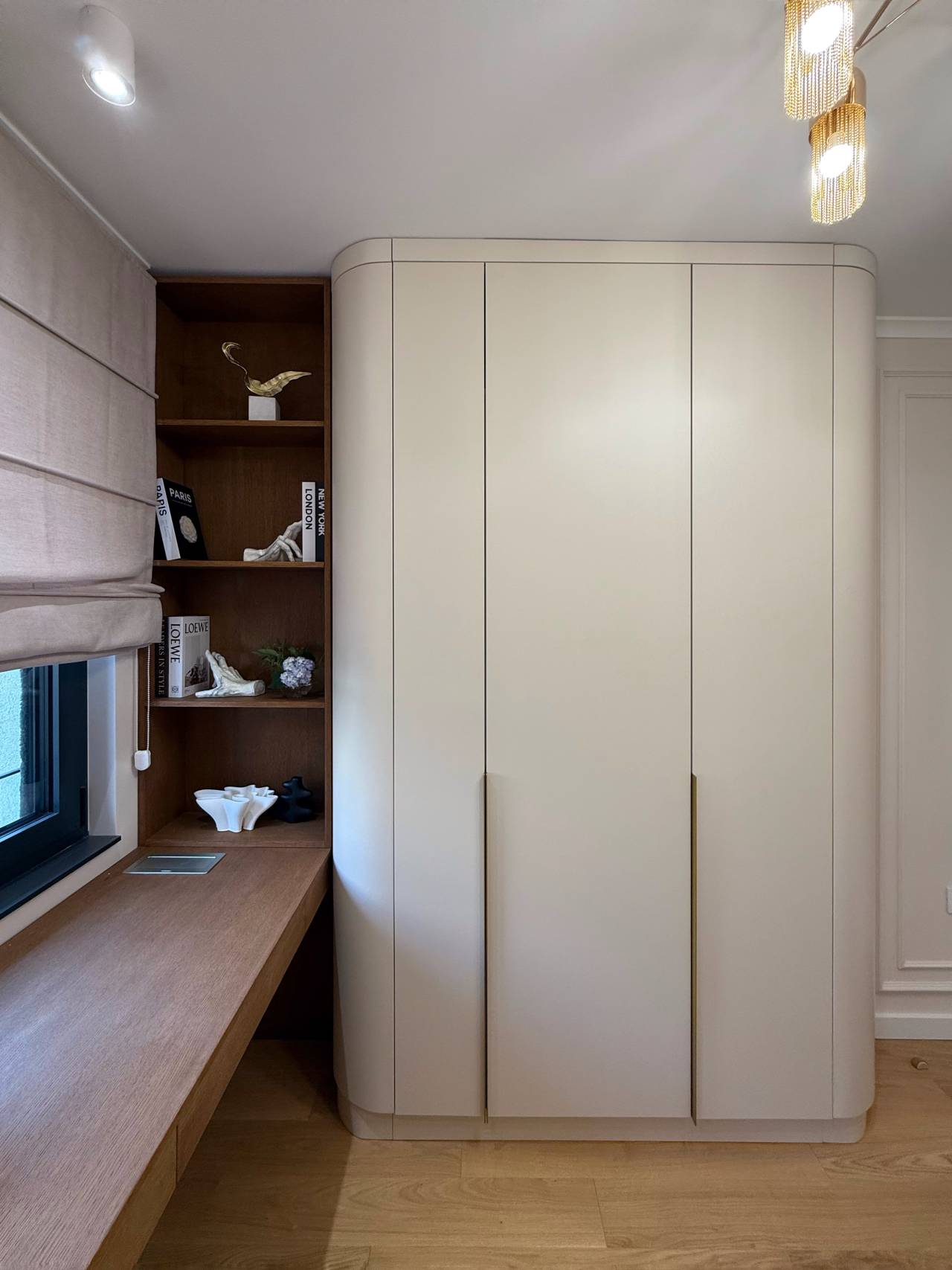 Iako enterijer zadržava jasne i precizne forme, upravo ti suptilni zaobljeni elementi doprinose osećaju udobnosti i ravnoteže.