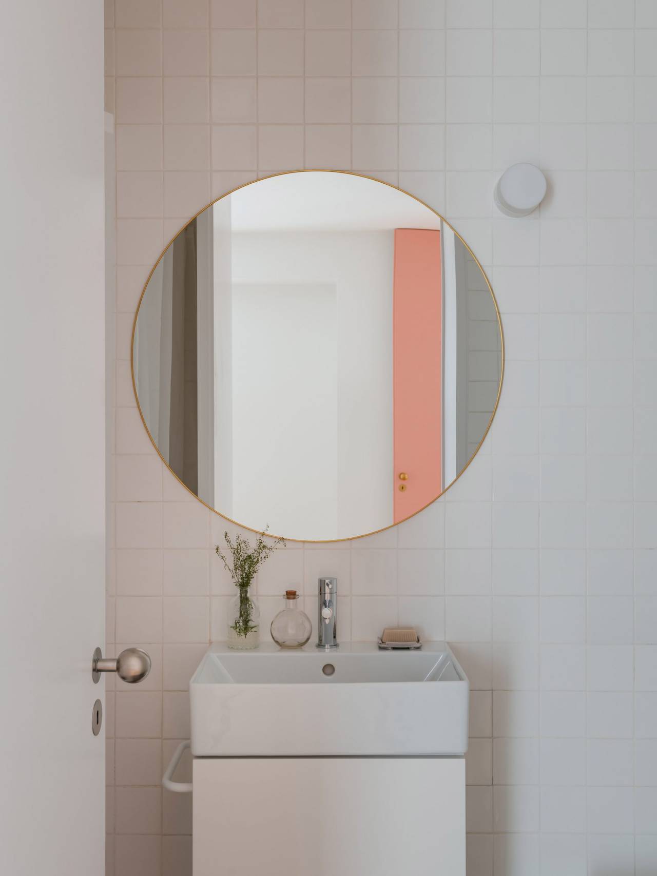Veliki prozor osvetljava spavaću sobu, dok okrugli otvor omogućava svetlosti da prodre u hodnik.