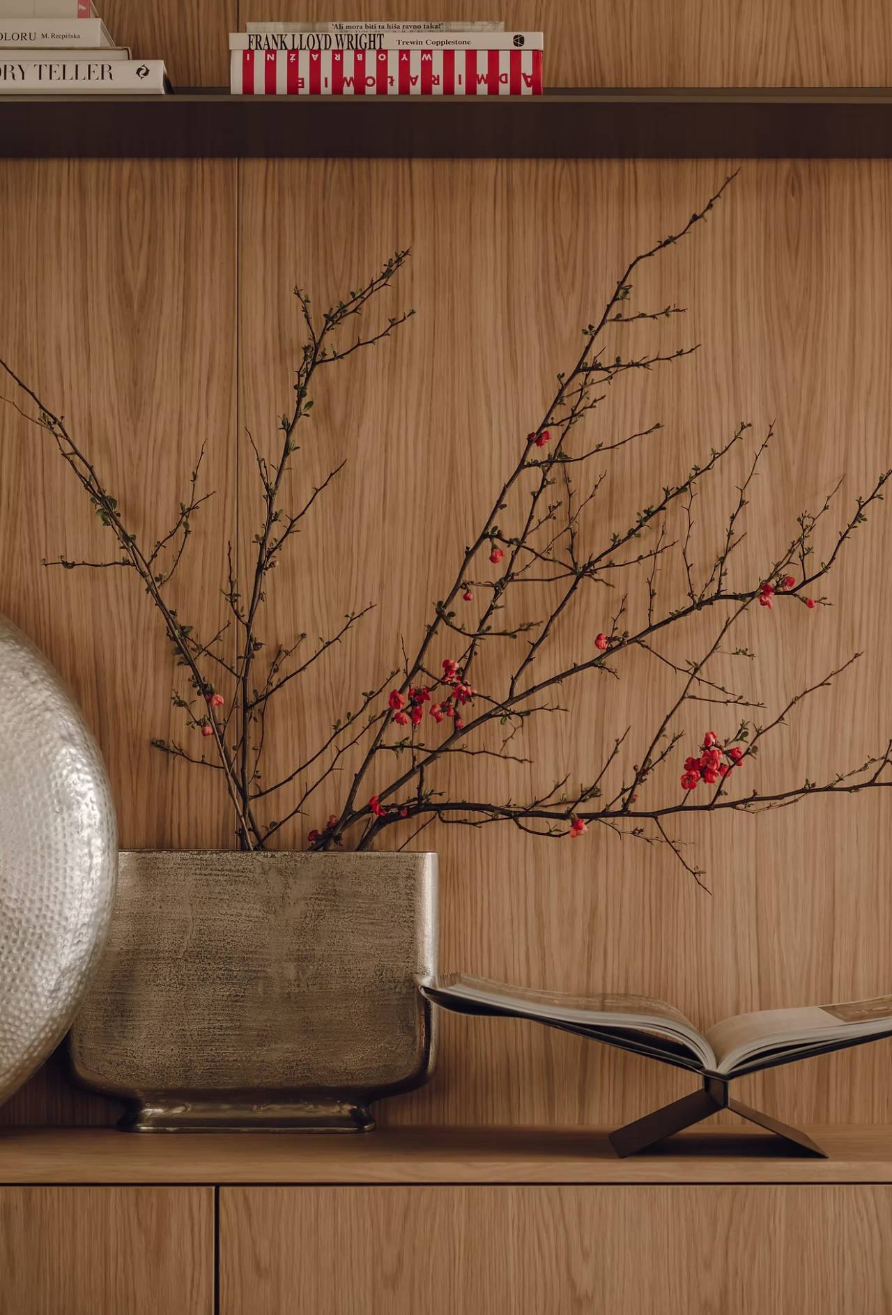 U celom stanu posebna pažnja posvećena je sitnicama koje grade ambijent: rasvetnim telima nalik na komade predimenzioniranog nakita, skulpturalnim vazama, pažljivo postavljenim knjigama i umetničkim delima na zidovima.