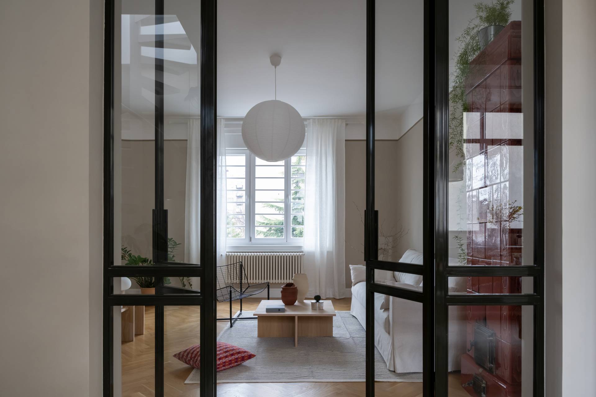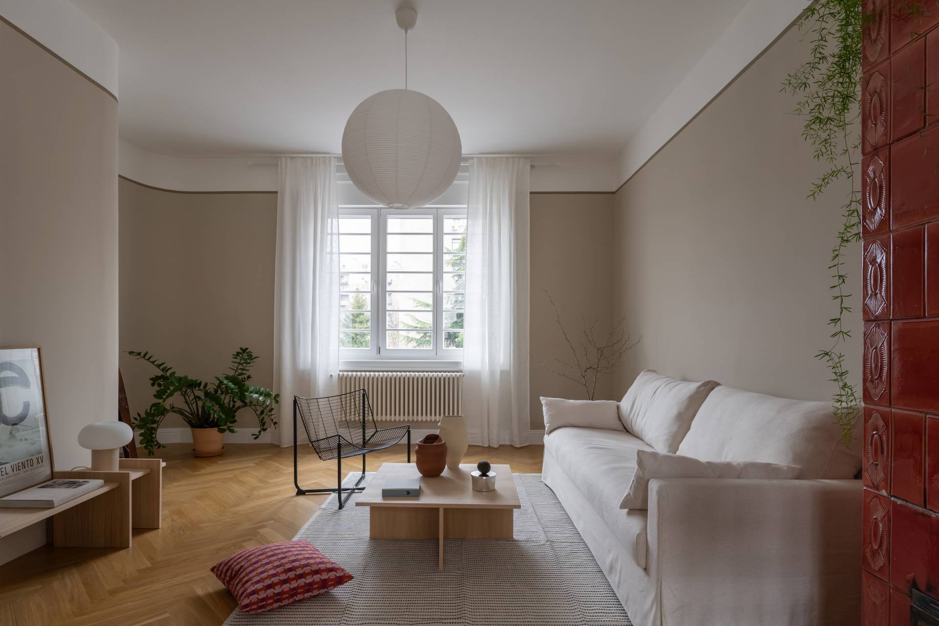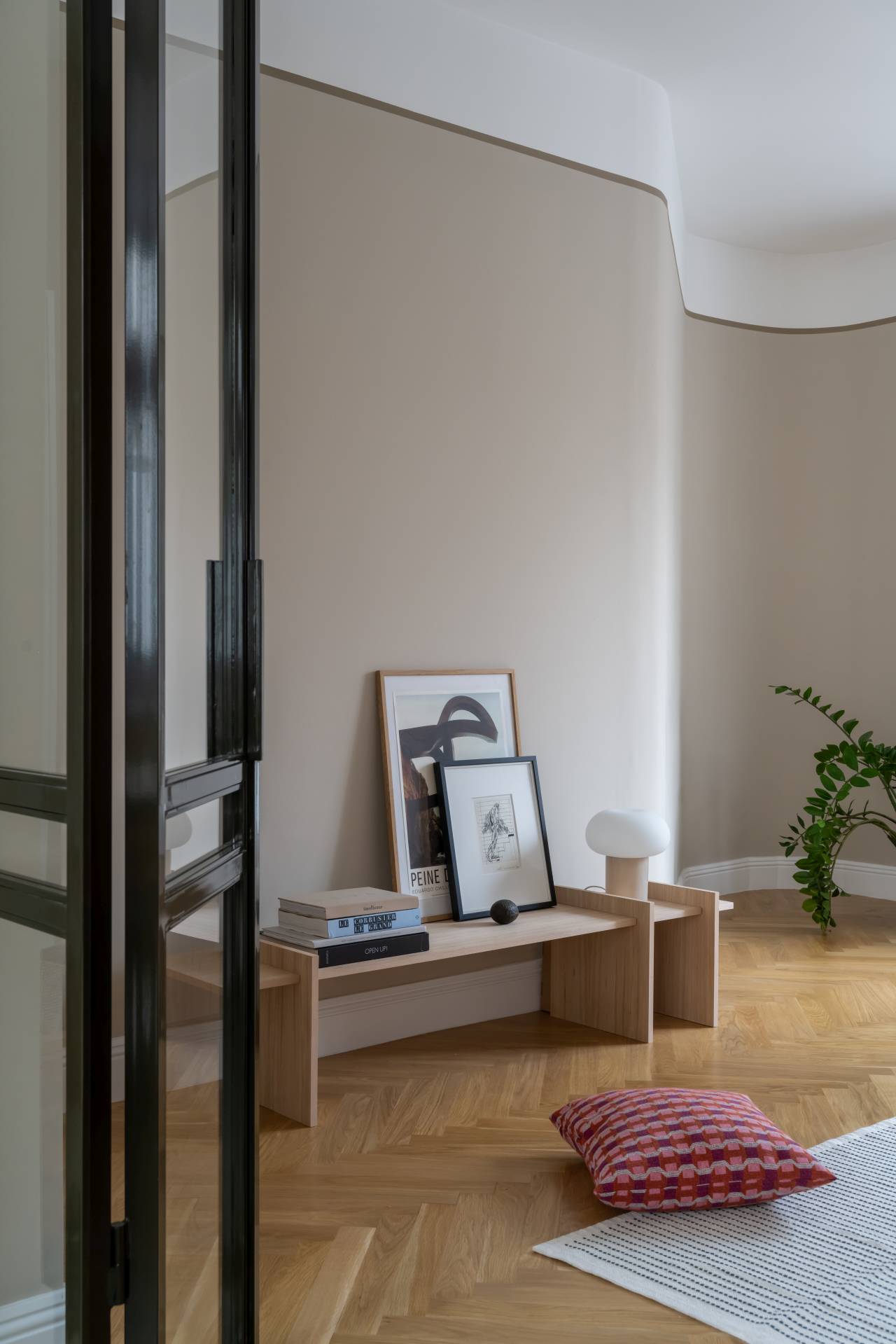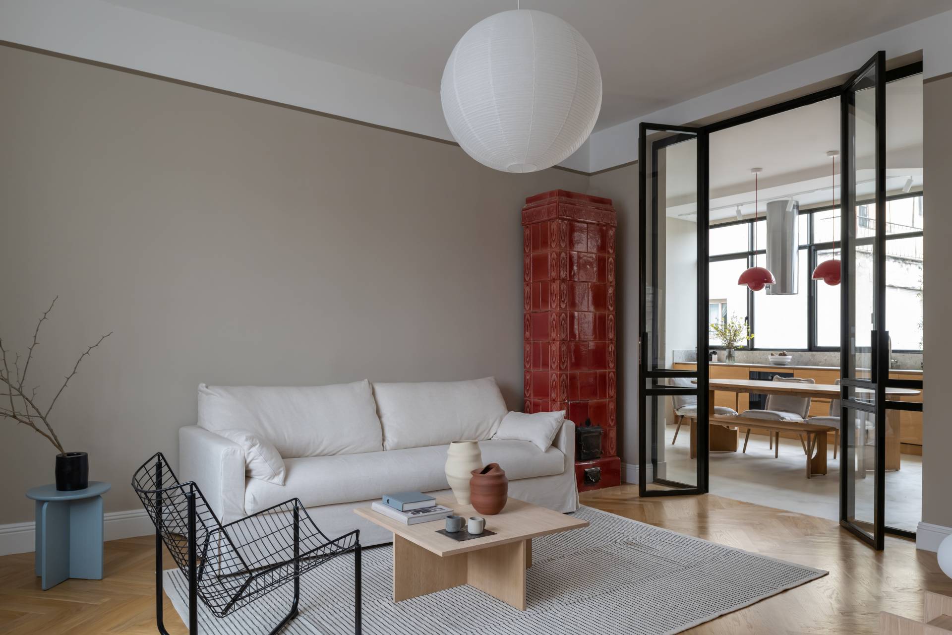 Enterijer u centru prestonice miri istoriju prostora i savremeni život, uz pažljivo očuvane originalne elemente i smiren dizajnerski izraz. Projekat potpisuje studio Focal, koji je ovaj stan posmatrao kao mesto distanciranja od gradskog ritma, a ne kao klasičan urbani dom.