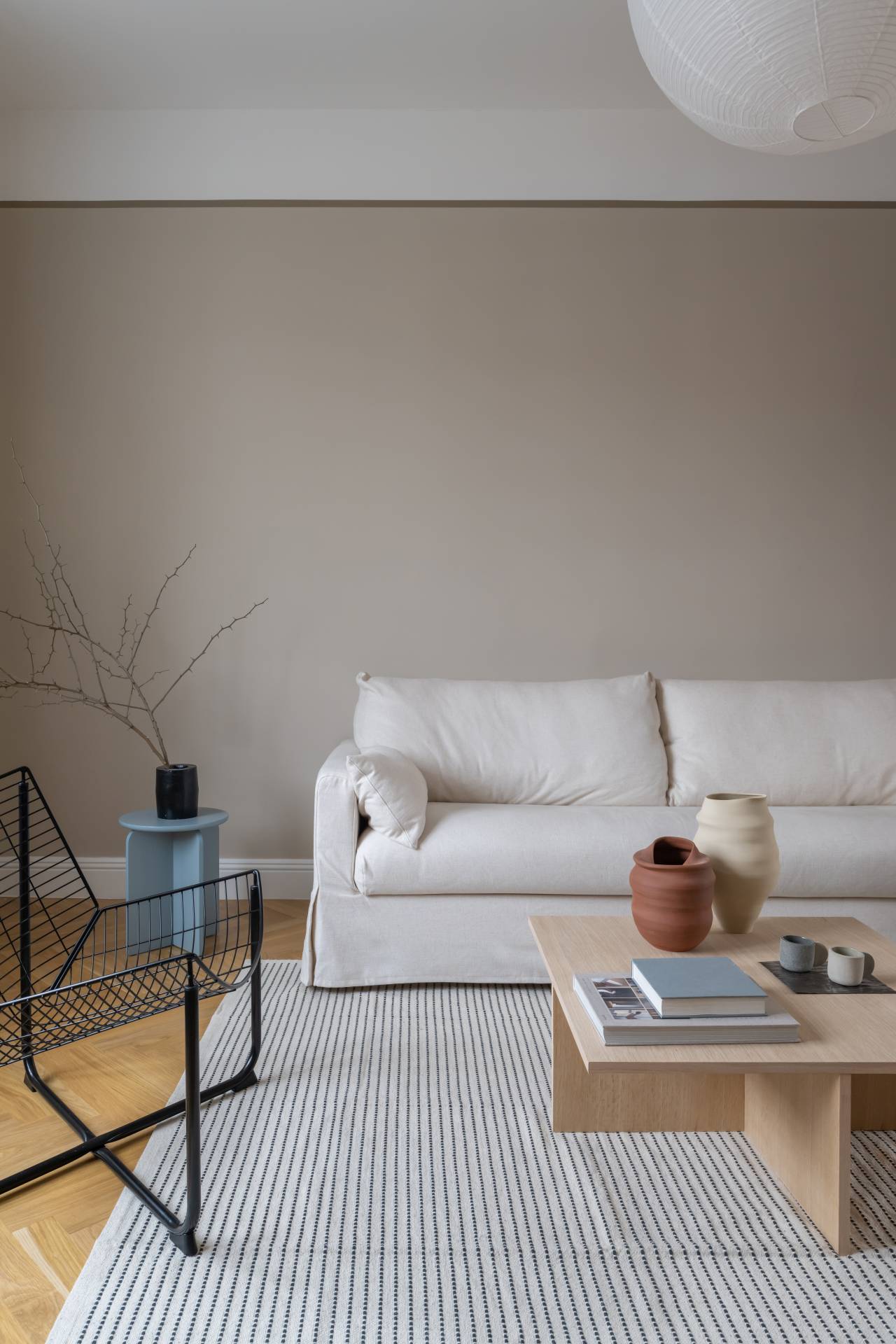 Umesto naglašene reprezentativnosti ili trendovskih rešenja, ovaj prostor osmišljen je kao tiho utočište koje kombinuje salonski karakter starog stana sa potrebama savremenog stanovanja.