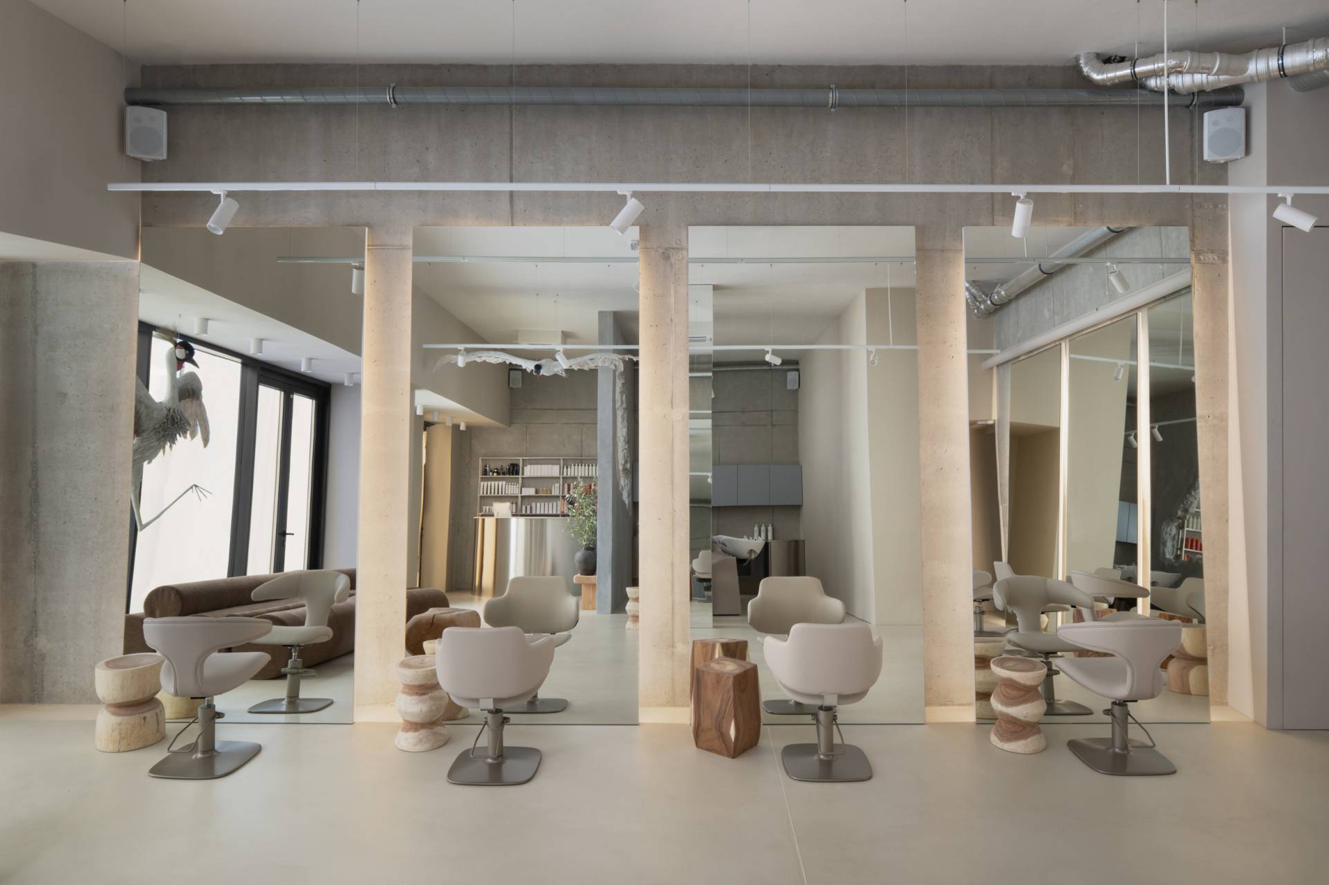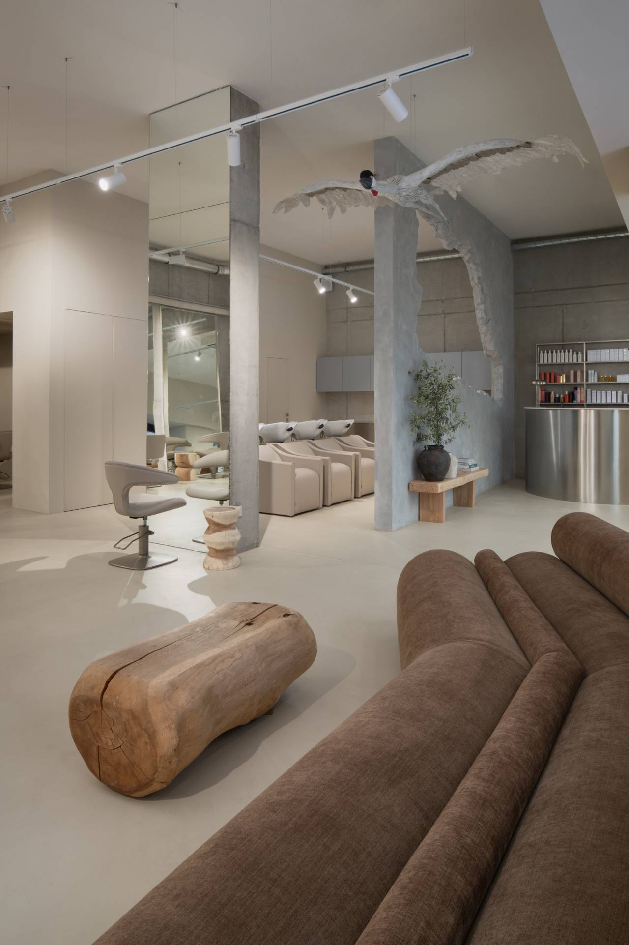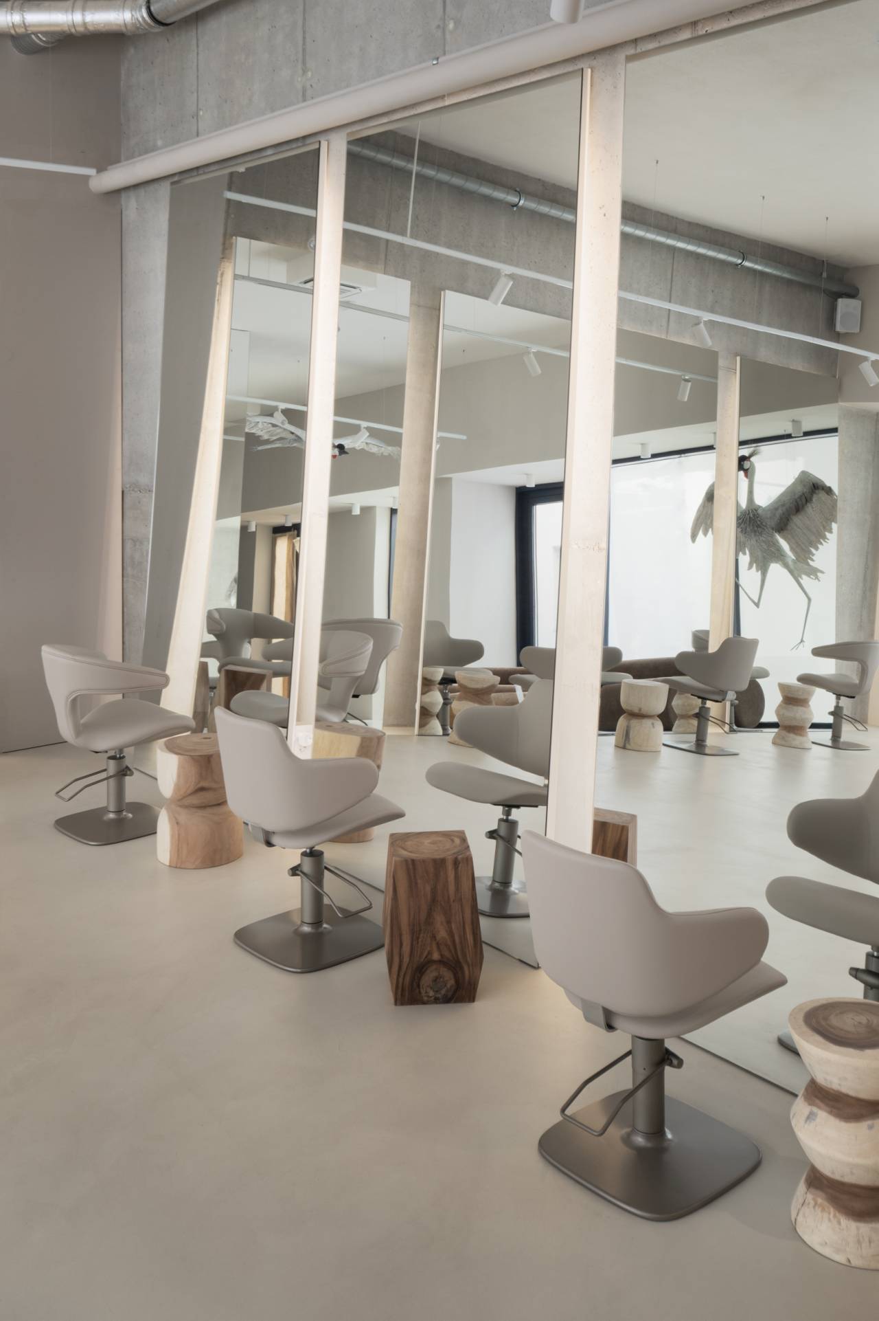 Skulpturalni zid, taktilna tekstura, prirodno drvo i futuristički metalni akcenti zajedno formiraju salon koji pripada vrhu zagrebačke frizerske scene i koji istovremeno odiše smirenošću, originalnošću i upečatljivom estetikom.
