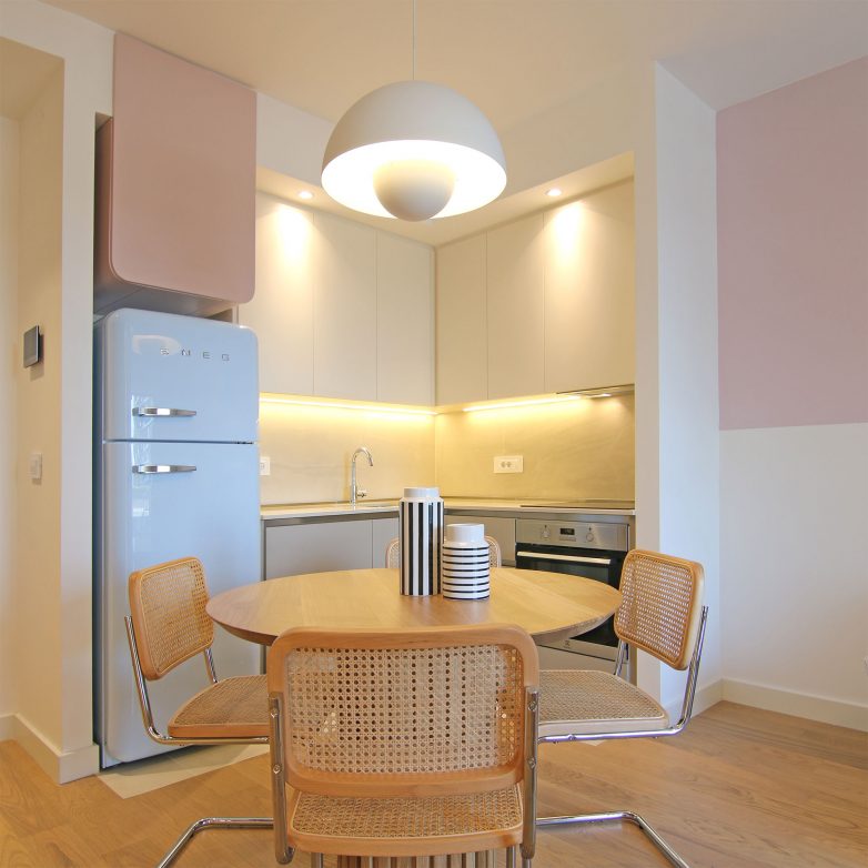 Kada su u boji, slobodnostojeći frižideri boji mogu biti prava zvezda kuhinje ali i nosilac celokupnog dizajna enterijera baš kao u primeru stana Sonje Brstine.