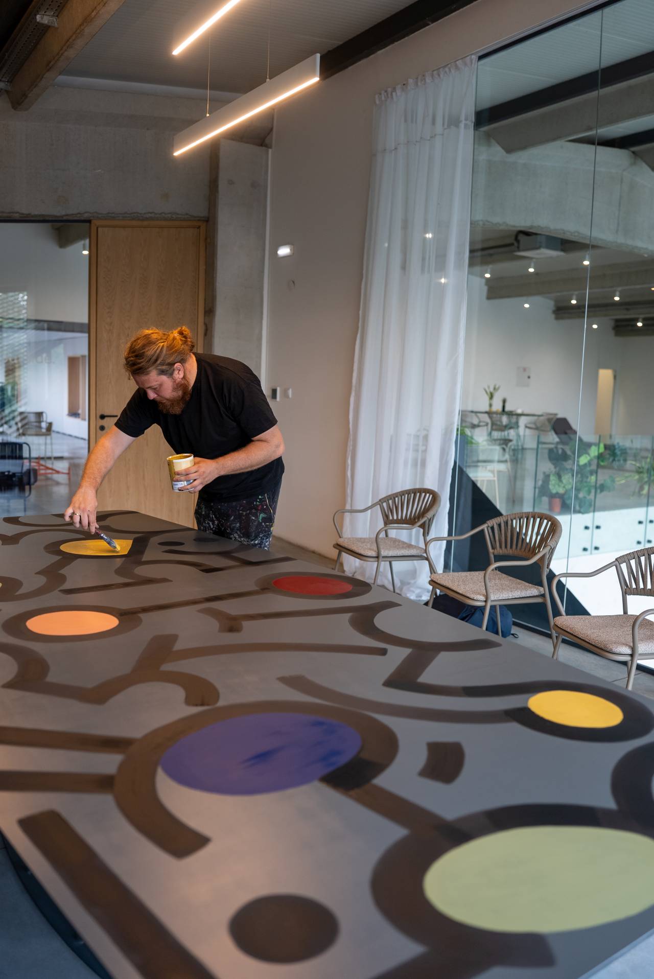 Centralni deo štanda čini impozantni sto ATAMAN dimenzija 350×150 cm, koji je umetnik oslikao u svom prepoznatljivom stilu.