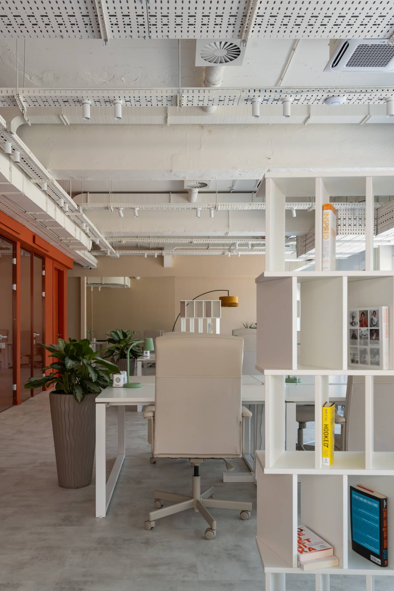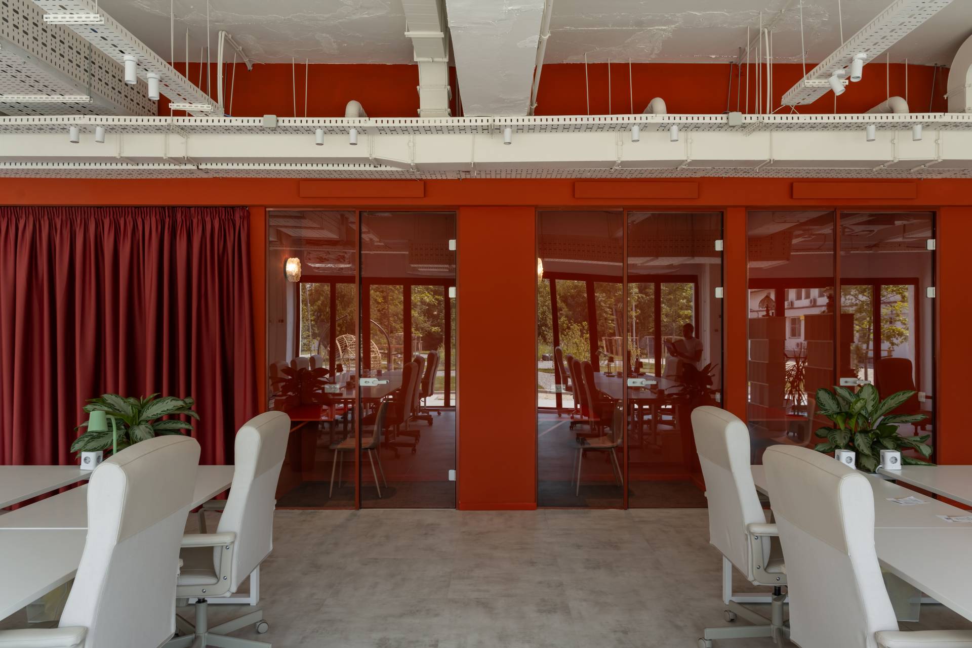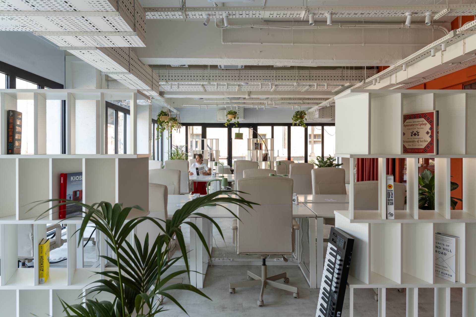 Toplina prostora postignuta je kombinacijom staklenih pregrada, LVT podova, akustičnih panela i bogatog zelenila.