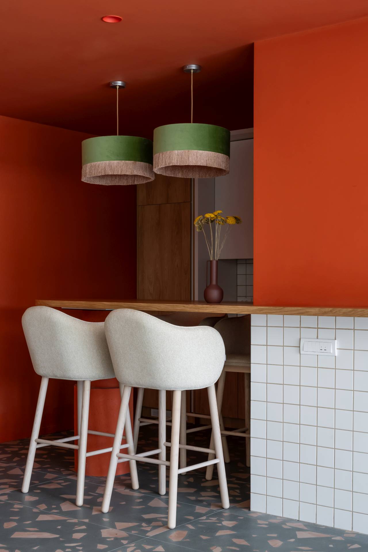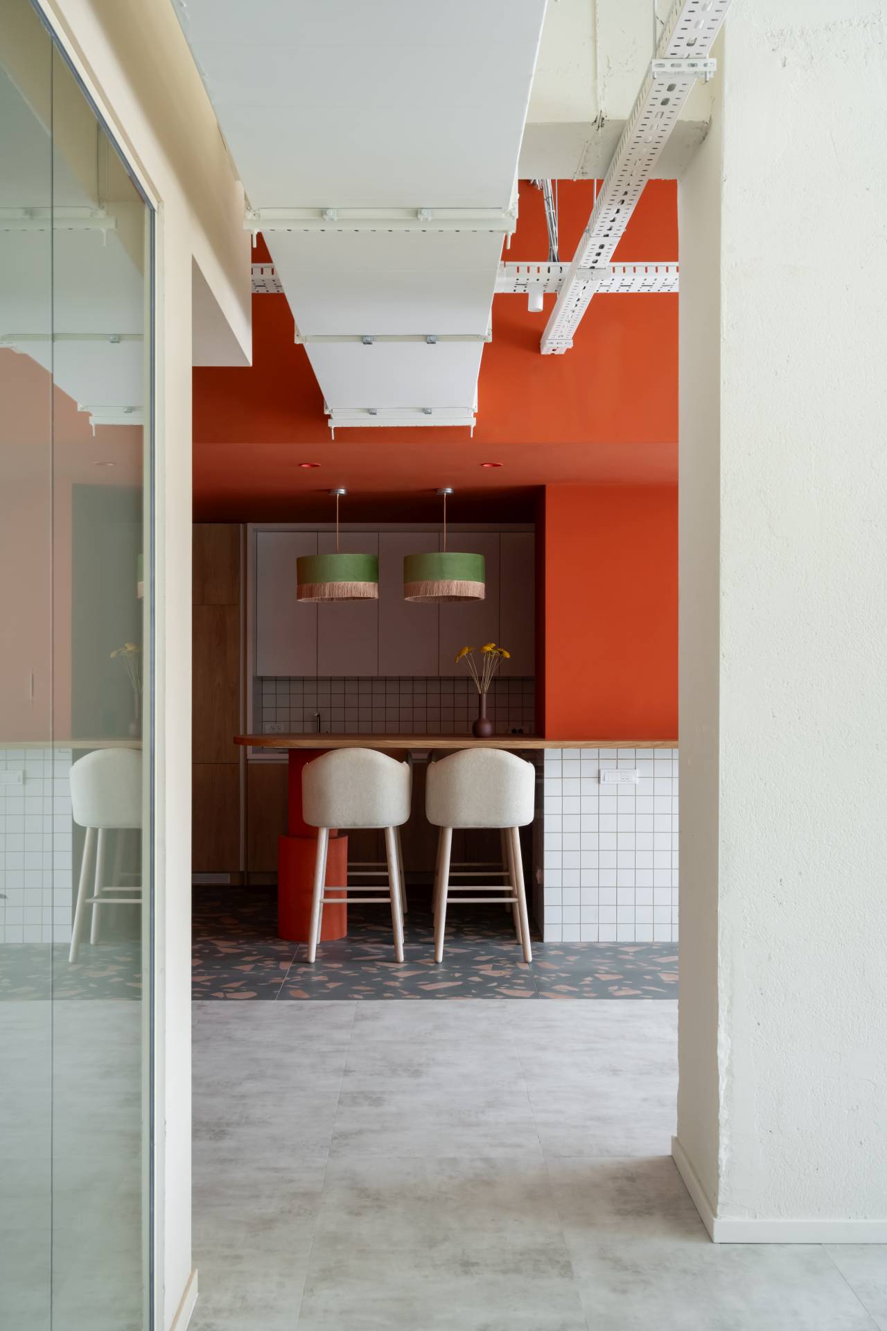 Na jednom od njih arhitekte su pronašle motiv srpskog ćilima i odlučile da od njega krenu. Tako su spojili savremeno radno okruženje sa tradicionalnim elementima lokalne kulture, koristeći boje iz ćilima – terakotu, zelenu i bež – kao osnovu za ceo enterijer.
