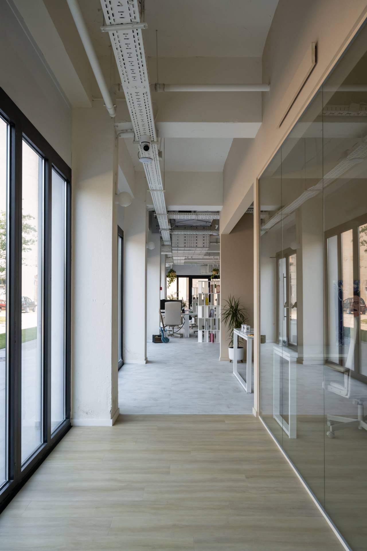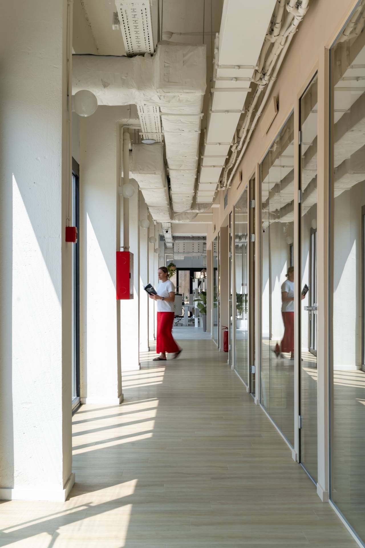 Sve je povezano kružnim hodnikom koji vodi ka restoranu odvojenom staklenom harmonika pregradom, koja po potrebi može da se otvori i pretvori u jedinstven prostor za konferencije ili događaje.