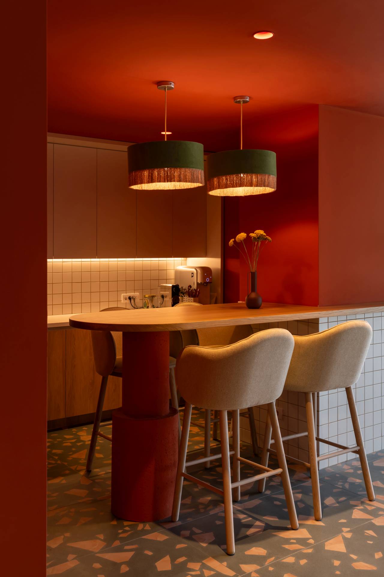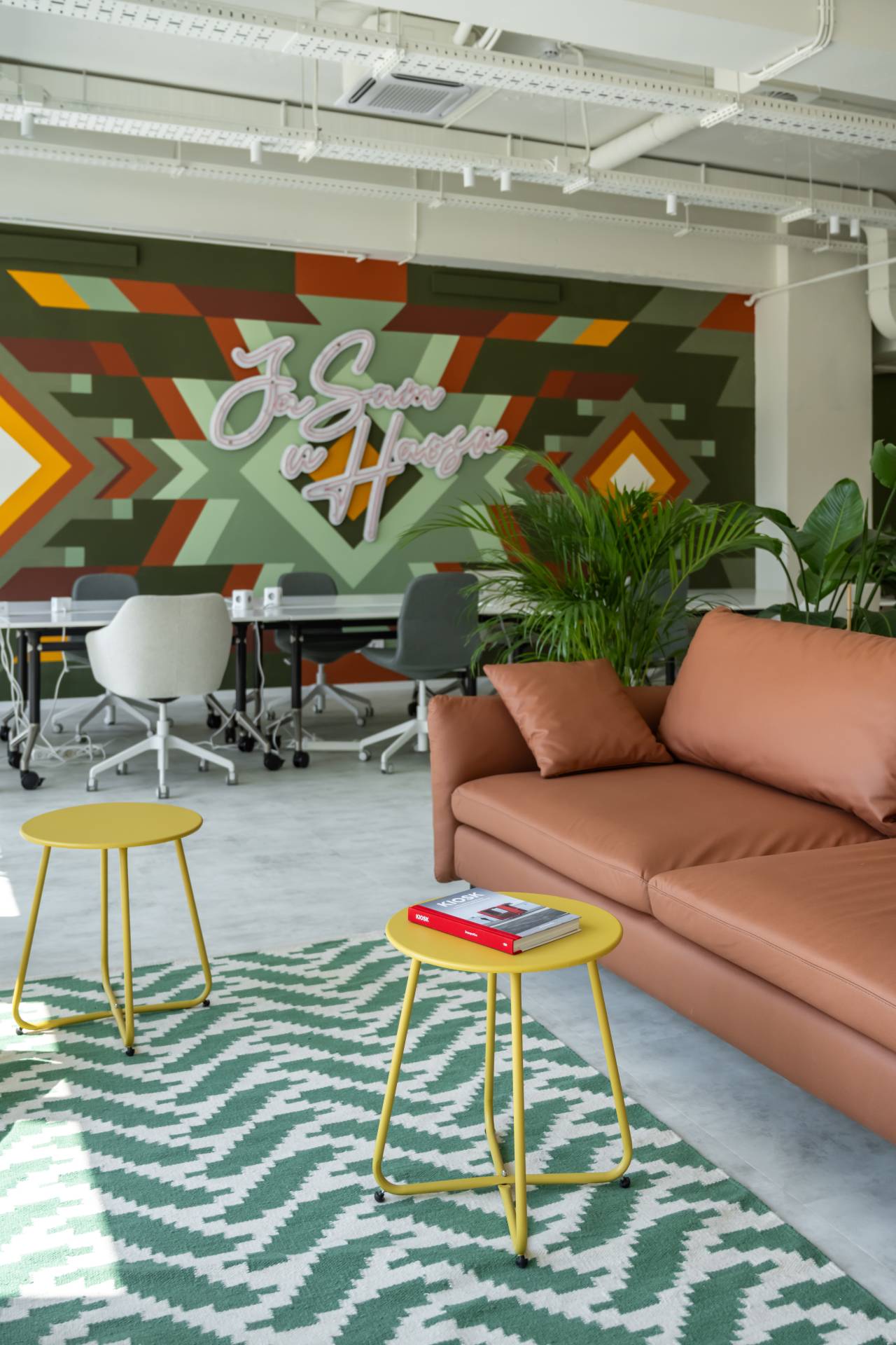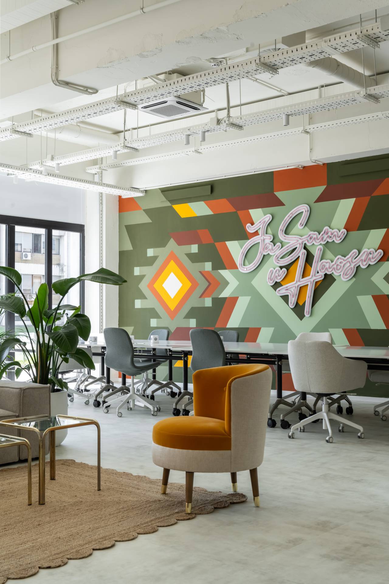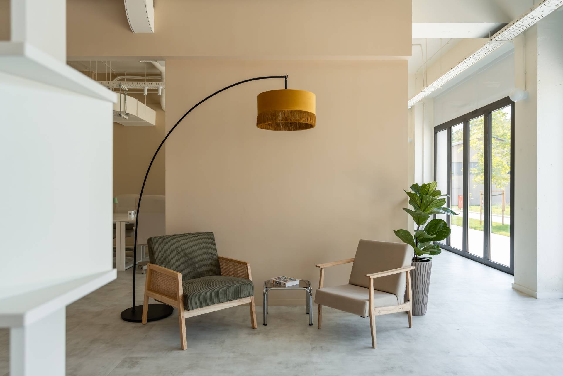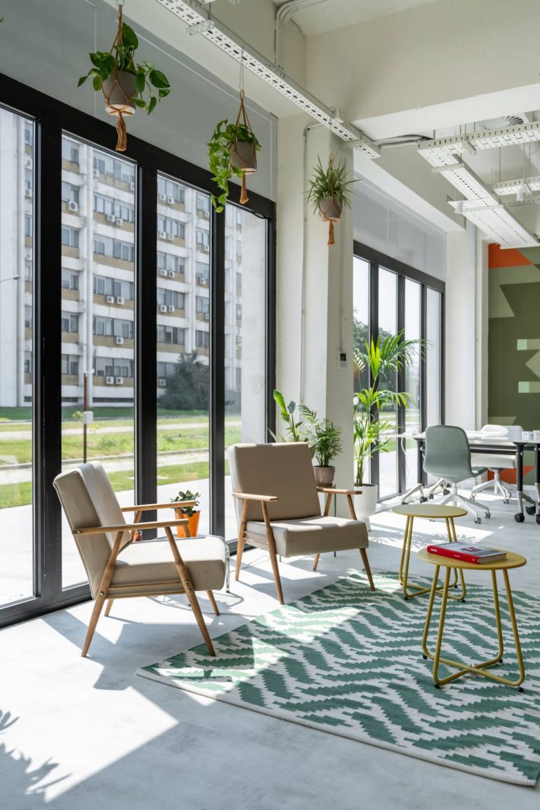 Rezultat je toplo, meko i vizuelno stimulativno okruženje koje, umesto korporativne distance, podstiče kreativnost i druženje.