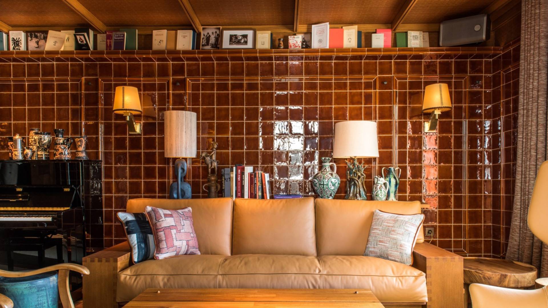 Prostor je ispunjen ličnim predmetima – knjigama, vazama, fotografijama, umetničkim delima.