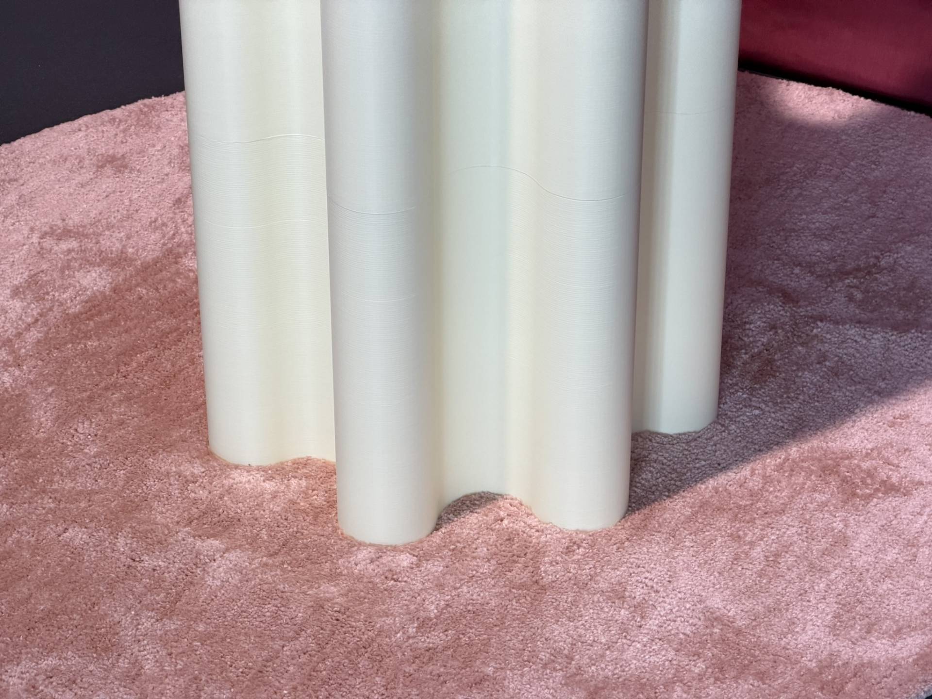 Inspiracija dolazi iz jednog naizgled jednostavnog motiva – zavese: “Formalno, inspiracija dolazi iz uredno drapirane zavese: njen ritam uvodi osećaj smirenosti, dok je čitav komad osmišljen za prostor kome nedostaje mekoća, volumen i toplina.”