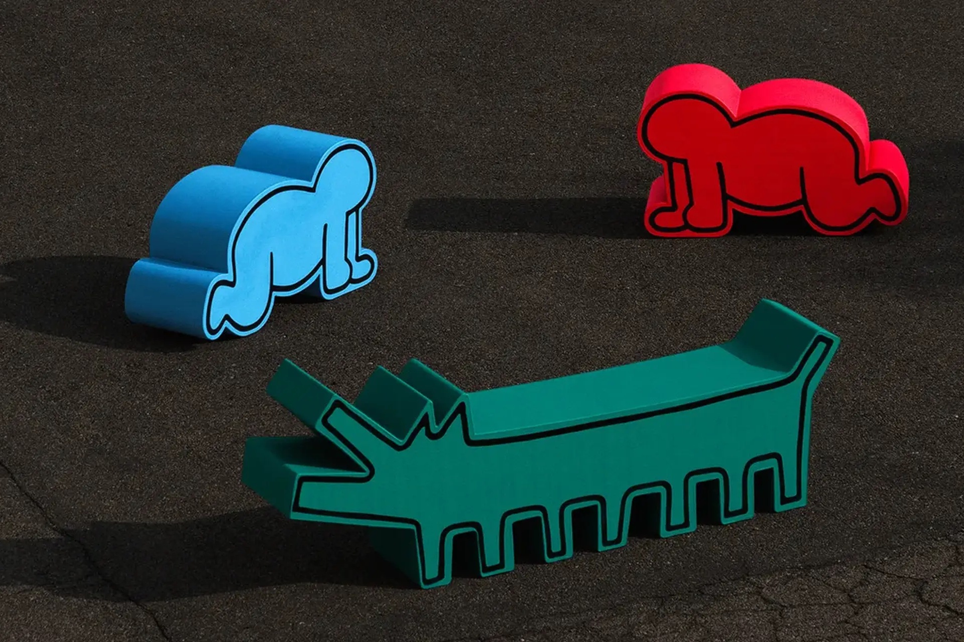 Gufram je zadržao autentični izgled Heringovih dvodimenzionalnih crteža, ali ih je pretvorio u skulpturalne komade izrađene od poliuretana.