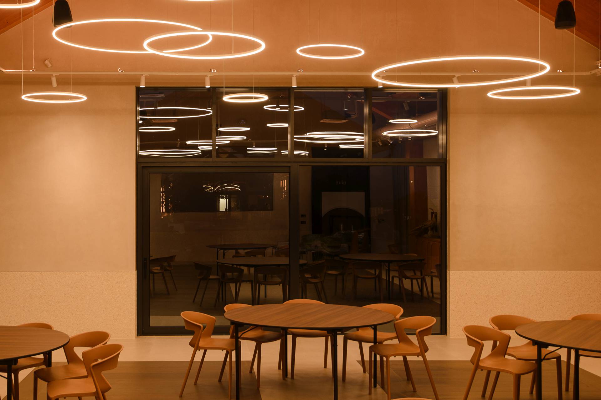 Unutrašnjost prostora prepoznatljiva je po visini od oko sedam metara, što omogućava jak vizuelni utisak i osećaj prozračnosti.